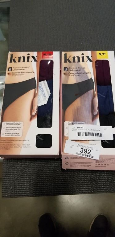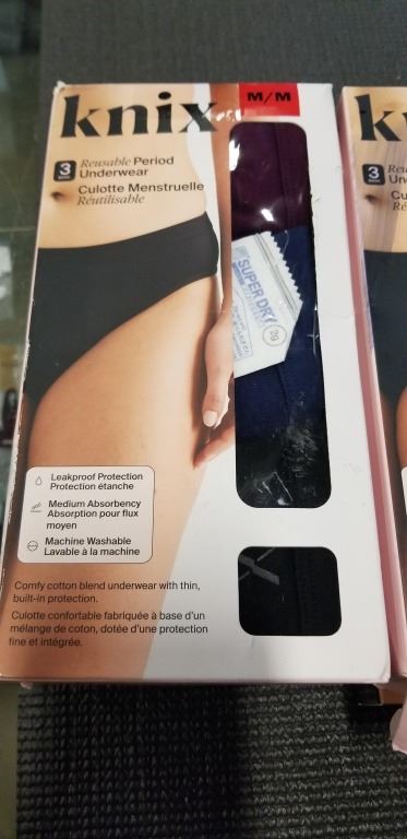 4 NEW 3 PACKS OF REUSABLE KNIX UNDERWEAR, ASSORTED SIZE