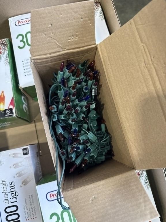 4 NEW 300 LIGHT 30FT ULTRA BRIGHT INDOOR OUTDOOR MULTI COLOR CHRISTMASS LIGHT SETS, 4 NEW 50 LIGHT 10FT CLEAR BULB SETS, AND ONE 100 LIGHT 20FT CLEAR BULB WHITE WIRE SET, ALL ARE CONNECTABLE