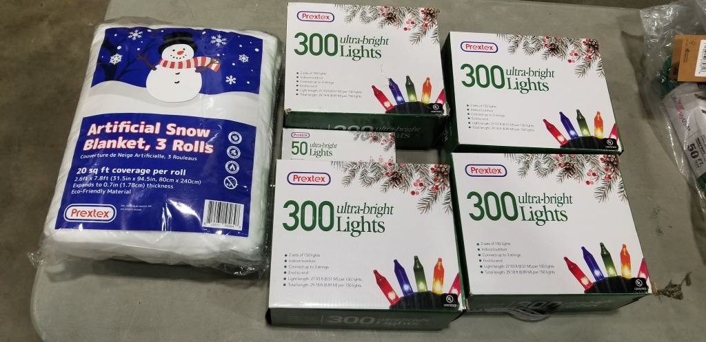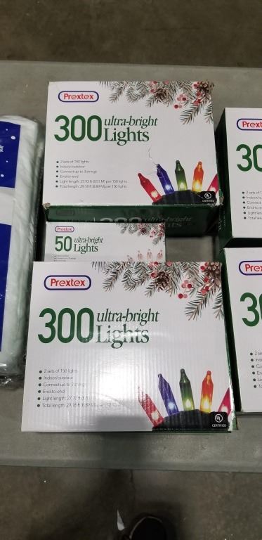 4 NEW 300 LIGHT AND ONE 50 LIGHT CHRISTMASS LIGHT SETS AND NEW SNOWBLANKET 3PACK