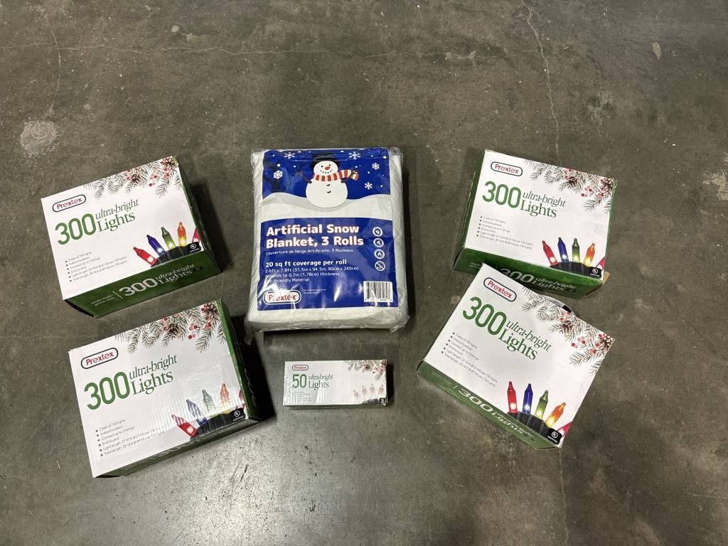 4 NEW 300 LIGHT AND ONE 50 LIGHT CHRISTMASS LIGHT SETS AND NEW SNOWBLANKET 3PACK