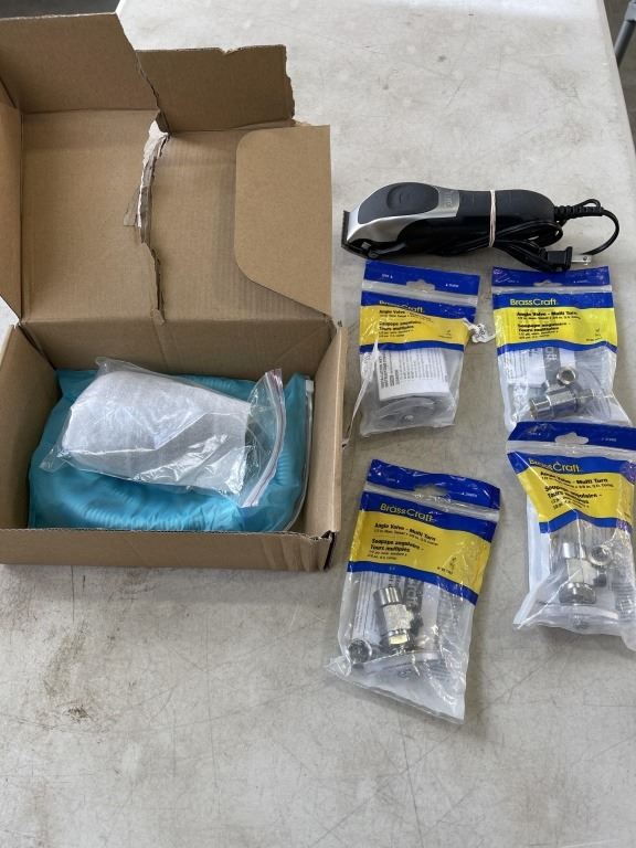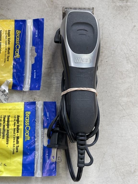 4 NEW ANGLE VALVES, WAHL HAIR CLIPPERS AND SHOWER ATTACHMENT