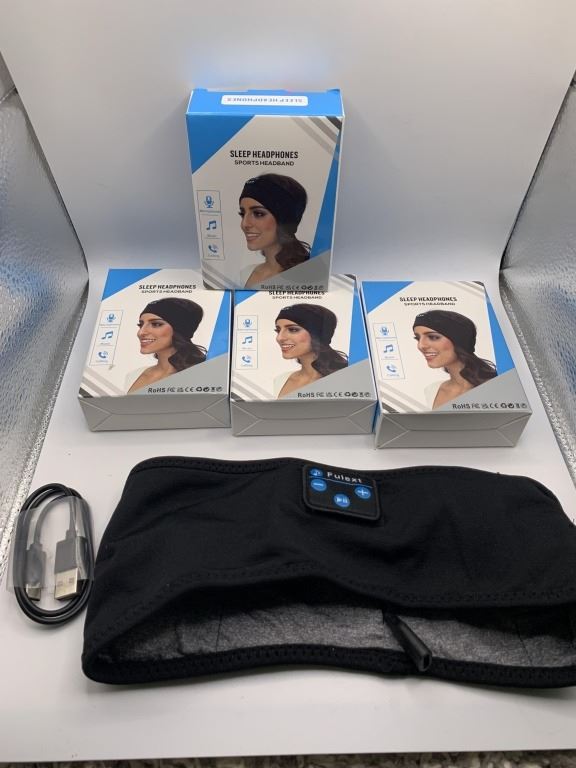 4 NEW BLACK/LIGHT GREY SLEEP HEADPHONES SPORTS HEADBANDS RETAIL $120