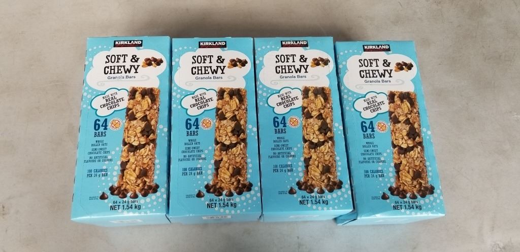4 NEW BOXES KIRKLAND SOFT AND CHEWY GRANOLA BARS - 64 BARS PER BOX, 256 GRANOLA BARS TOTAL, TOTAL RETAIL $115.99