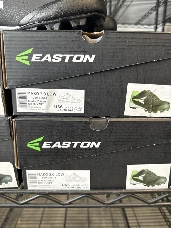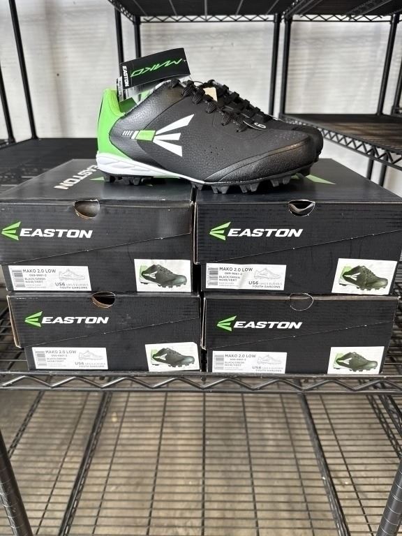 4 NEW EASTON MAKO 2.0 LOW BASEBALL CLEATS SIZE US 6 YOUTH, BLACK / GREEN
