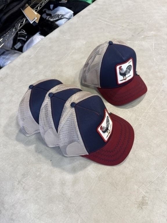 4 NEW GOORIN BRO'S THE FARM HATS, 'COCK', RETAIL $55 EACH , $220 VALUE