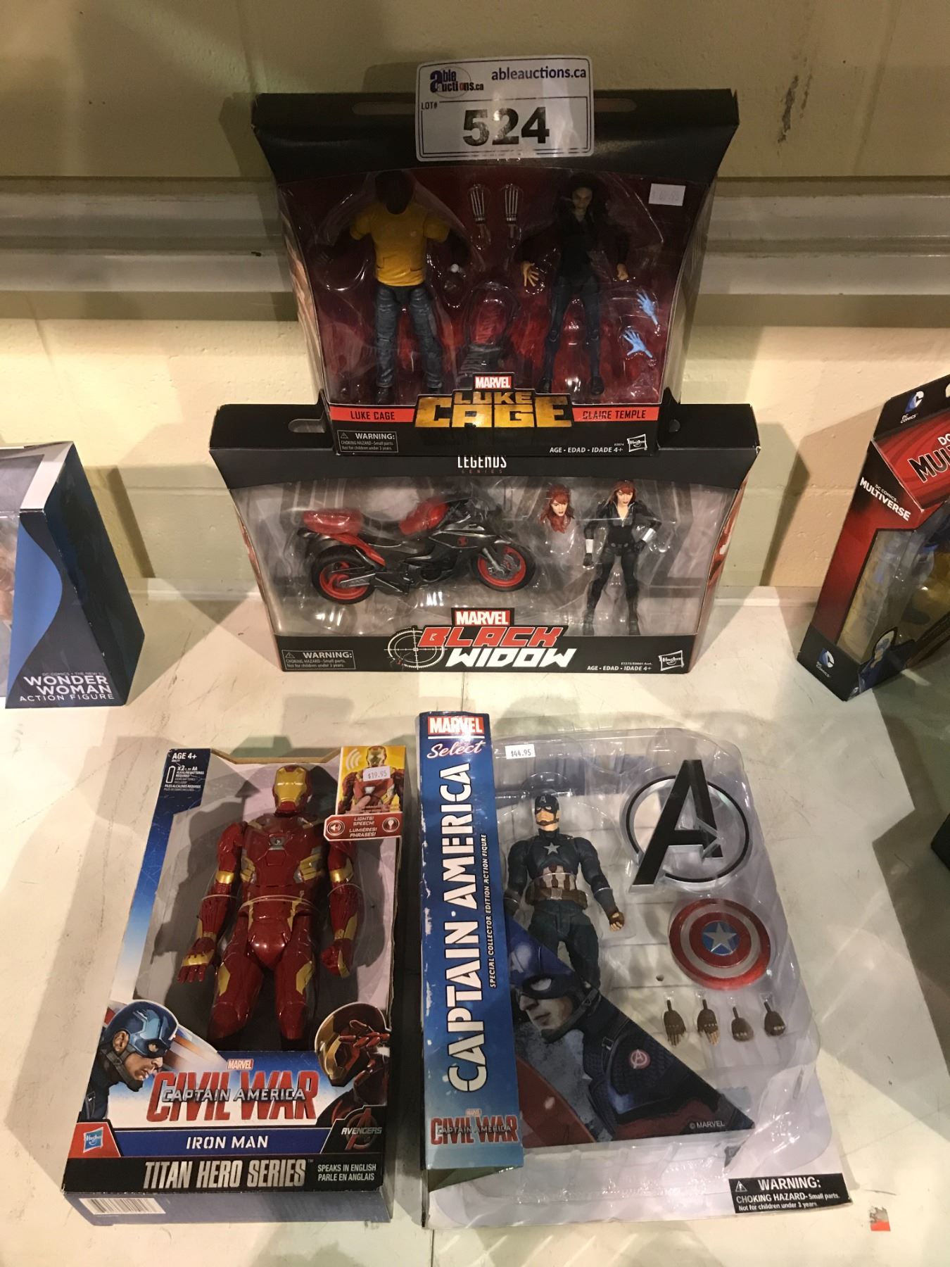 4 NEW IN BOX TOYS (IRON MAN, CAPTAIN AMERICA, BLACK WIDOW, & MORE)
