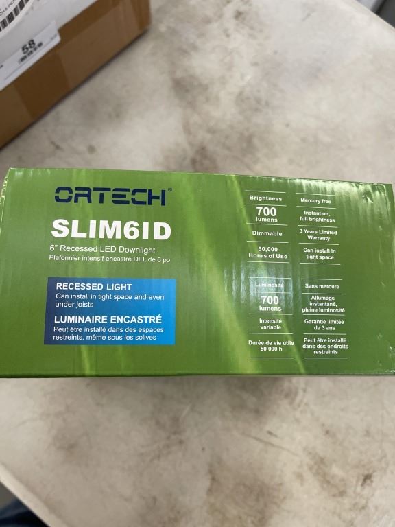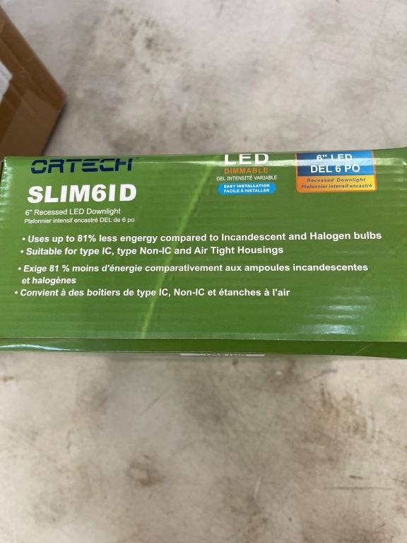 4 NEW ORTECH 6 INCH LED RECESSED DOWNLIGHTS, DIMMABLE WITH EASY INSTALL BOXES INCLUDED, 700 LUMENS SUITABLE FOR DAMP LOCATIONS