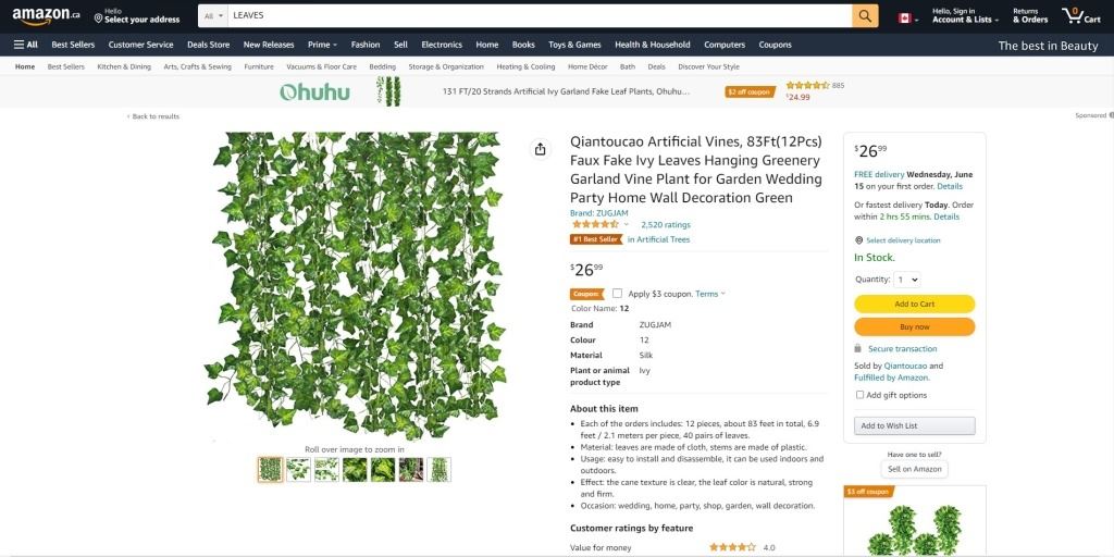 4 NEW PACKS OF 84FT ARTIFICIAL IVY LEAF DECOR RETAIL $100