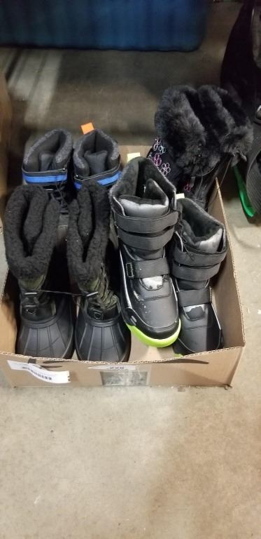 4 NEW PAIRS KIDS SIZE 1 WINTER BOOTS - 2 GIRLS, 2 BOYS