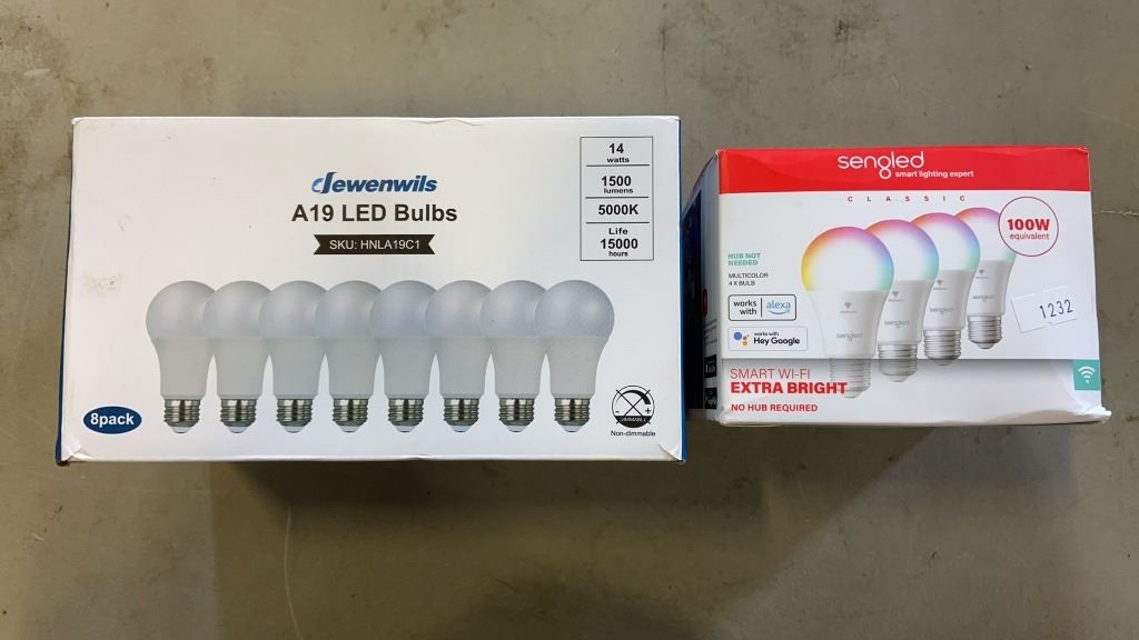 4 NEW SENGLED LED SMART LIGHT BULBS AND 8 PACK OF A19 LED BULBS RETAIL $99