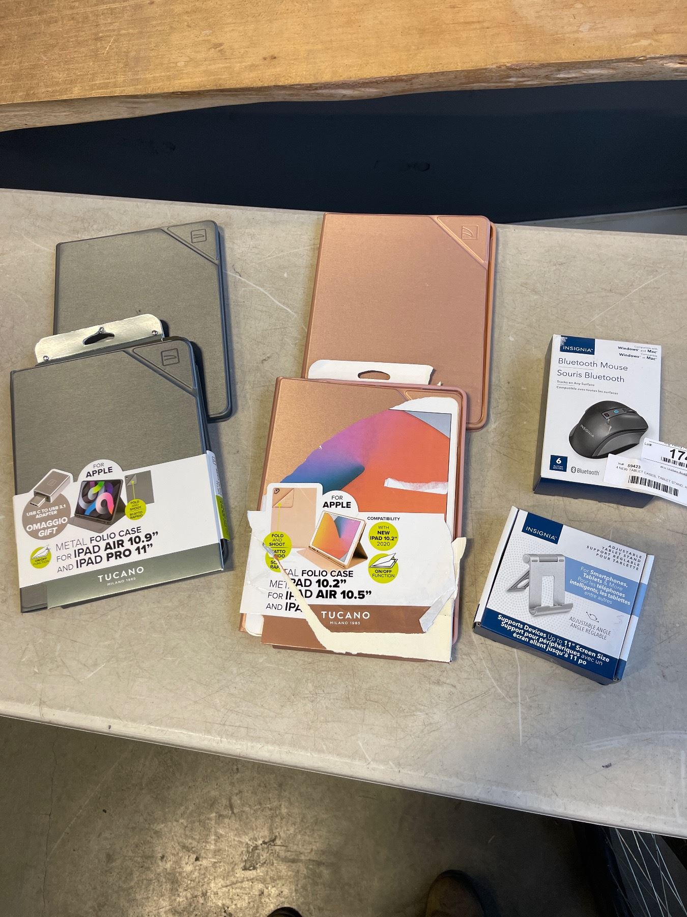 4 NEW TABLET CASES, TABLET STAND, AND WIRELESS MOUSE