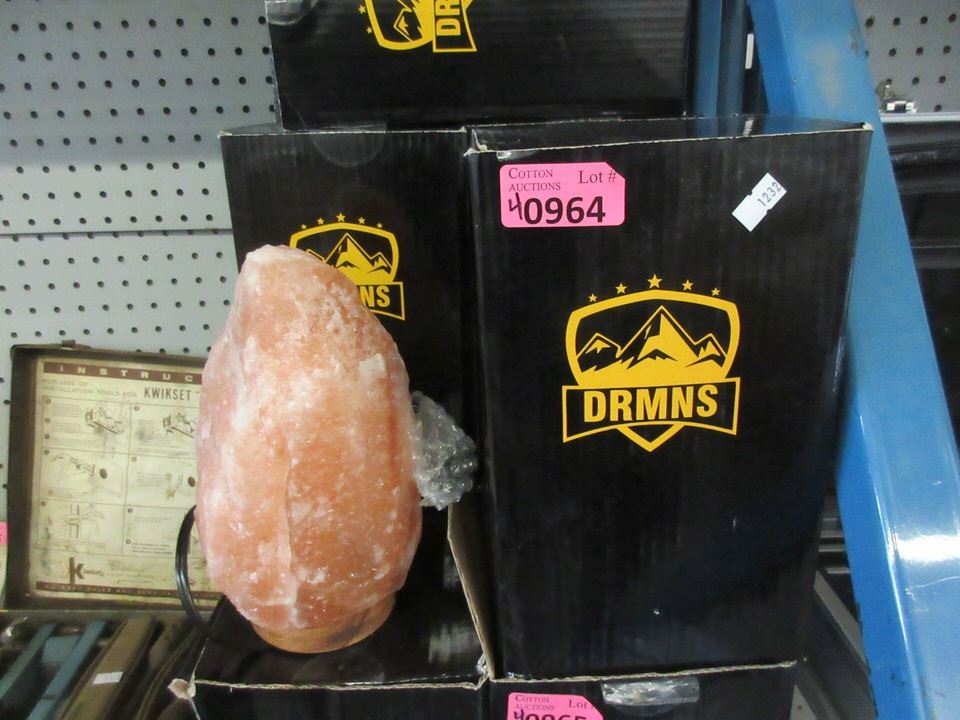 In box with bulb and cord. Average size is 8" tall x 6" diameter.