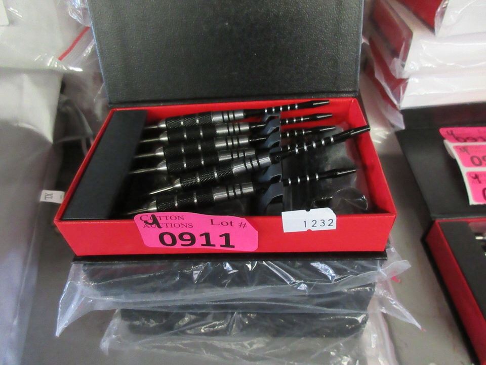 Each set contains 6 steel barrel darts (22 gram), dart sharpener, dart wrench, O rings, & more.