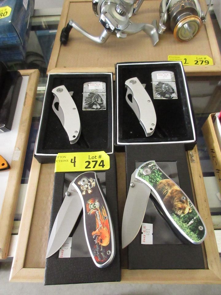 One knife has a Grizzly Bear design and one has a Metallica Band design. 3" Blades.