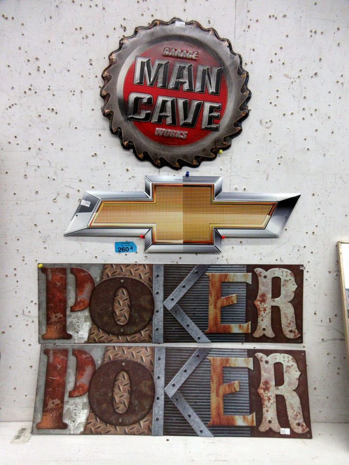 Poker 7.5" H x 25 W; Chevy 7" H x 21" W; Man Cave 14" diameter.