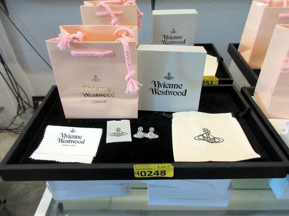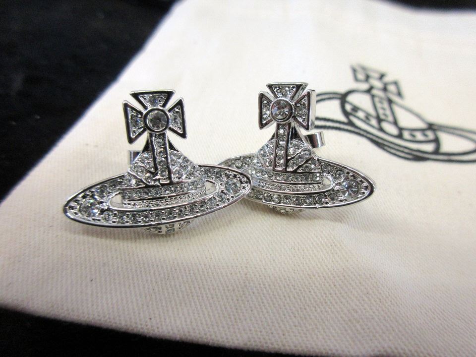 Silver tone crystal inset flat back sovereign orb earrings. 1.89 x 2.45 cm post back earrings. Includes cloth bags, boxes, and gift bags. Not authenticated.