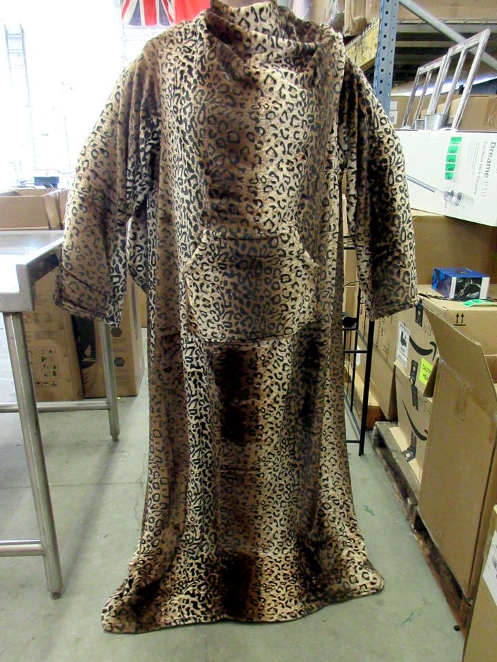 Full length. Kangaroo front pocket. Closes at the back with Velcro.