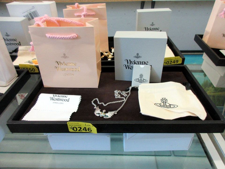 20" Necklaces with winged sovereign orb design. Includes cloth bags, boxes, and gift bags. Not authenticated.