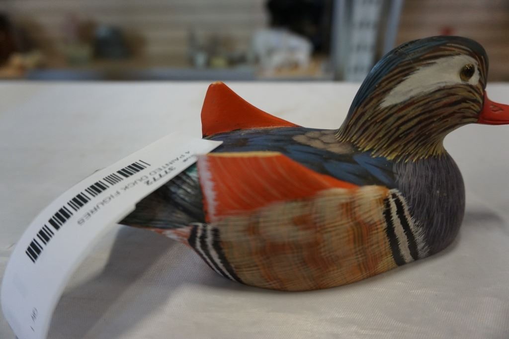 4 PAINTED DUCK FIGURES - ONE WOOD