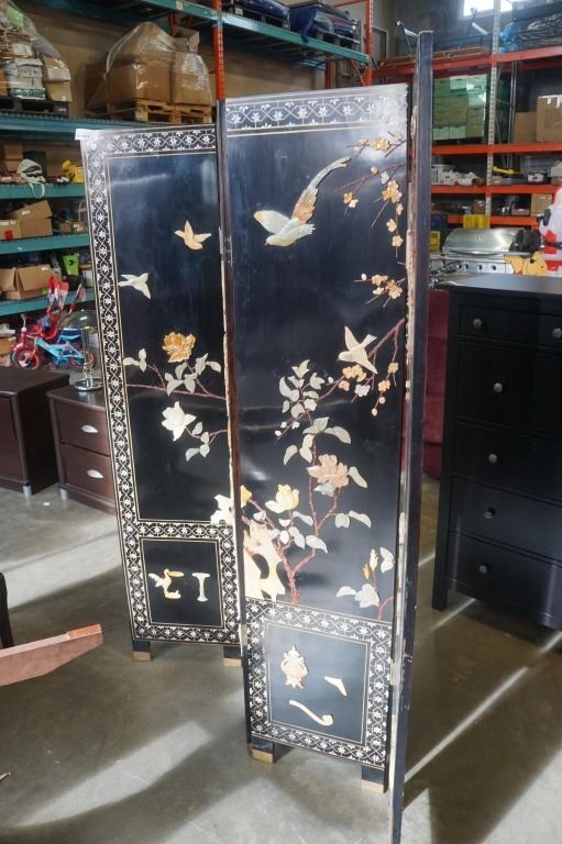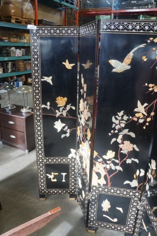4 PANEL EASTERN ROOM DIVIDER WITH STONE DECORATION