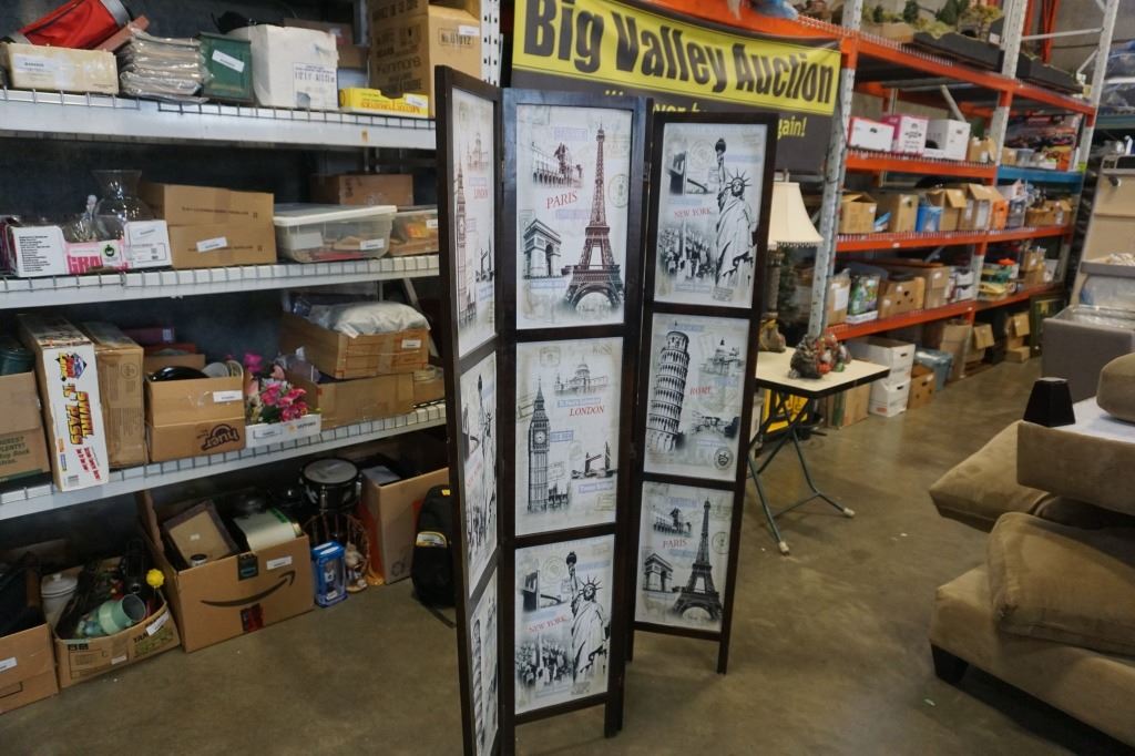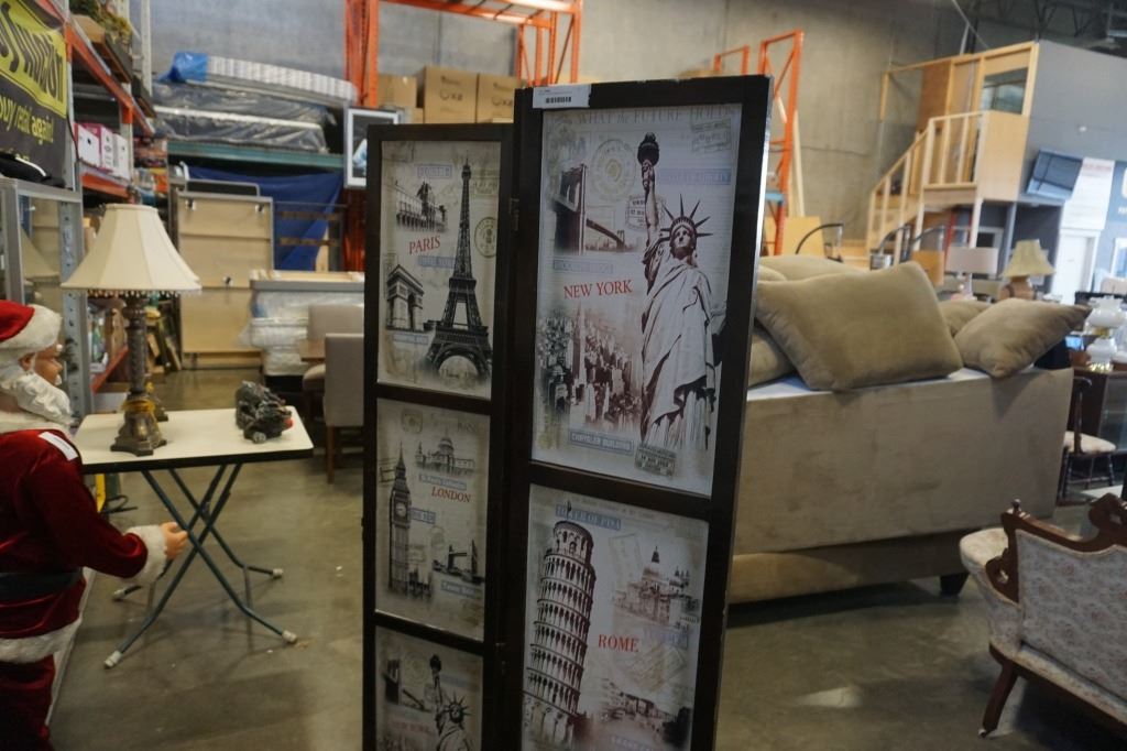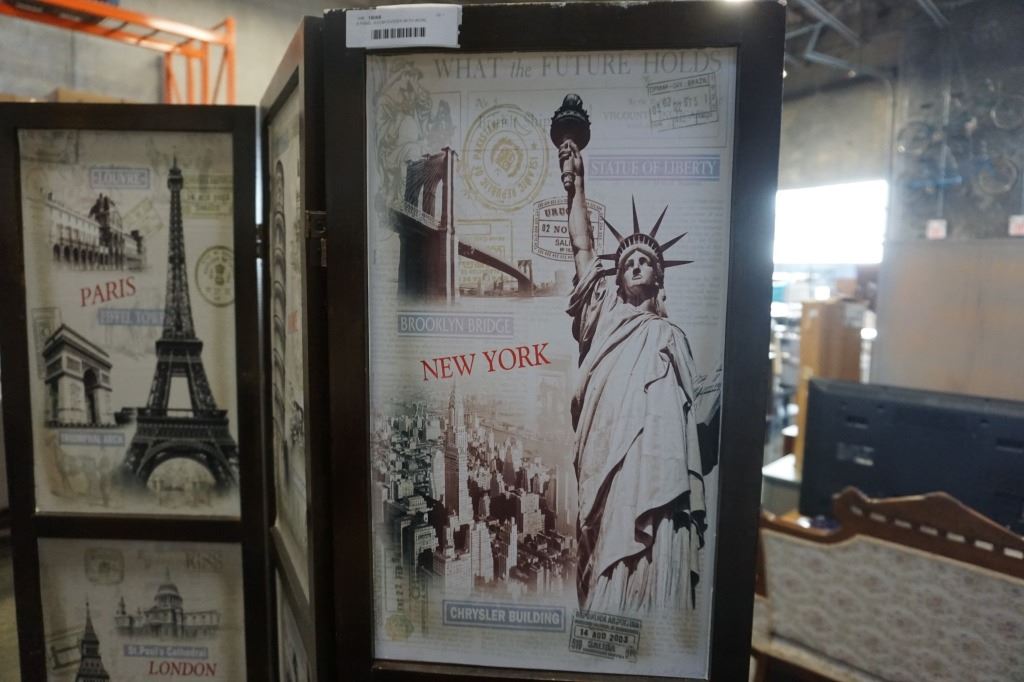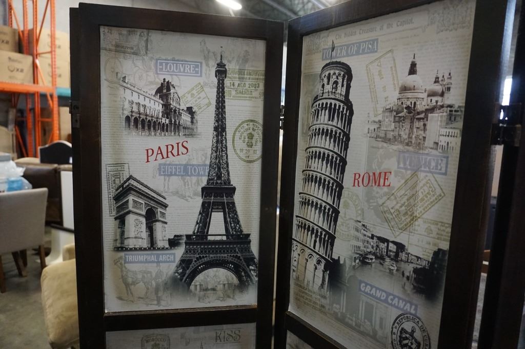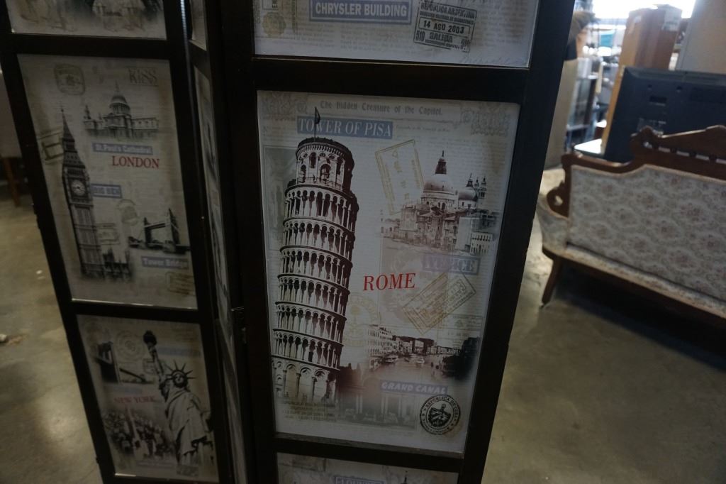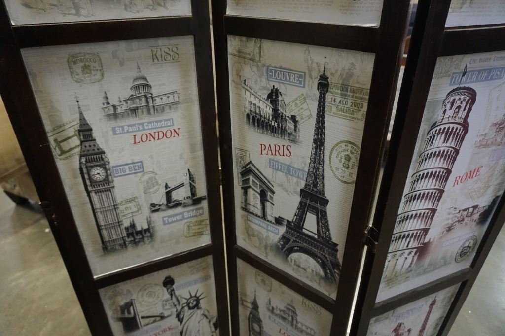 4 PANEL ROOM DIVIDER WITH WORL LOCATIONS PATTERN