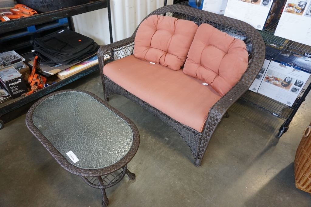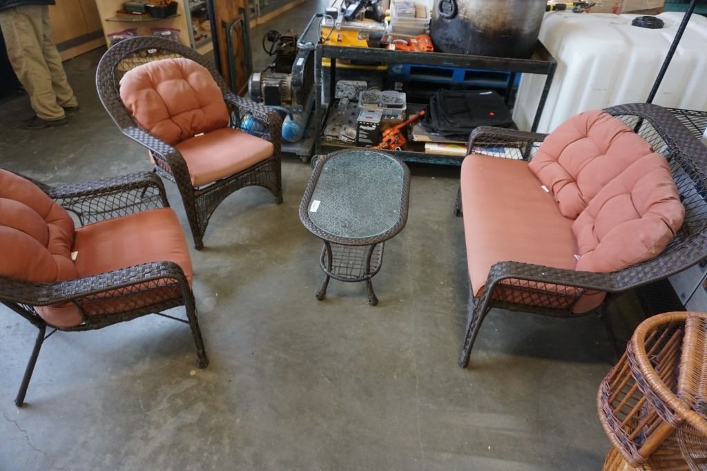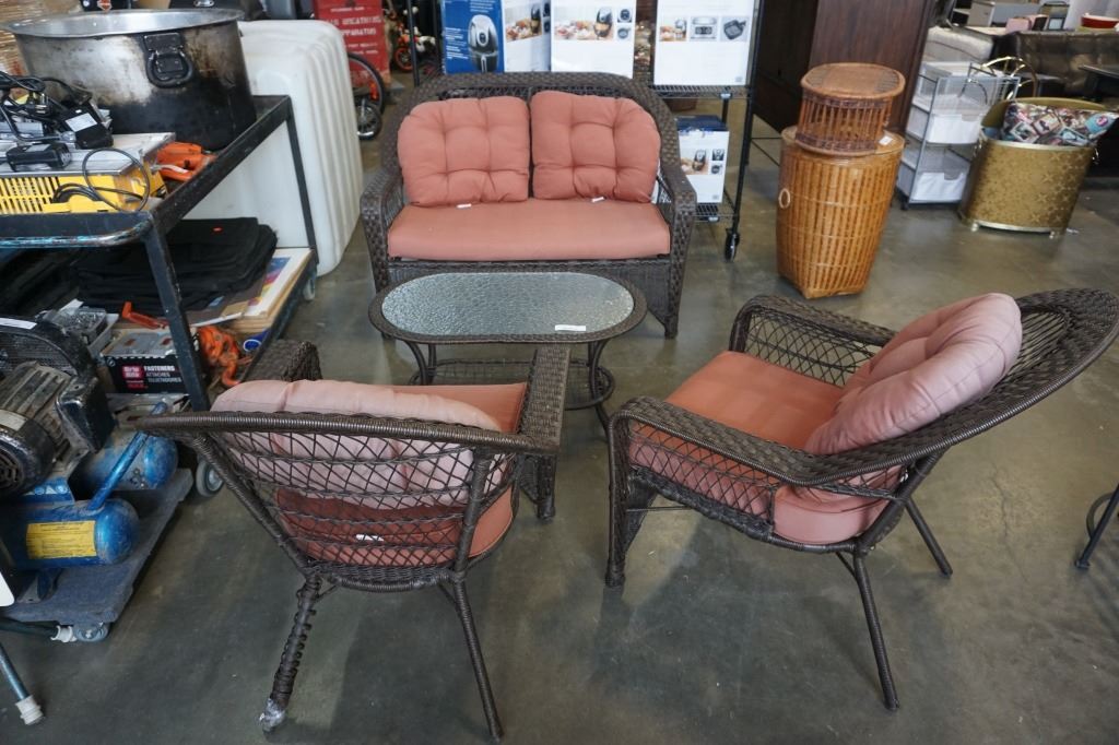4 PIECE WICKER PATIO SET - CUSHIONS FADED