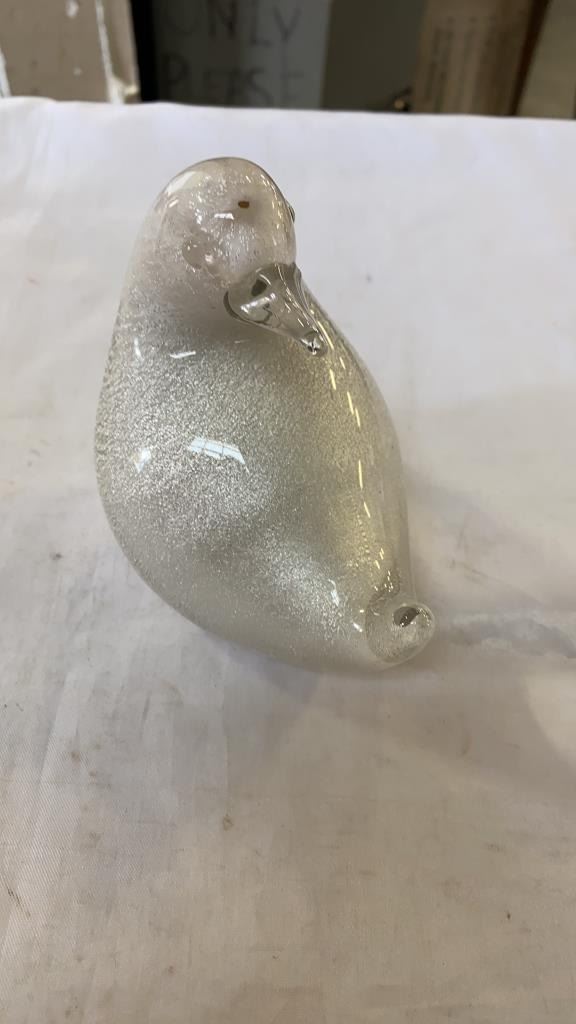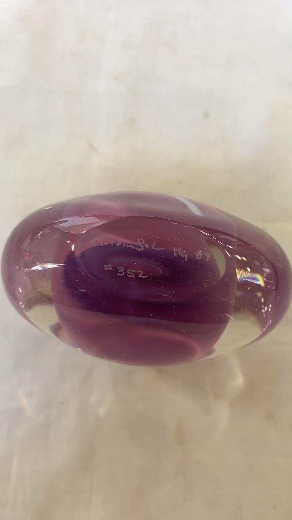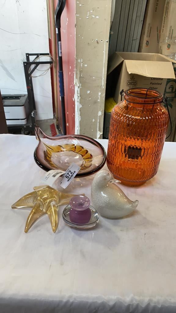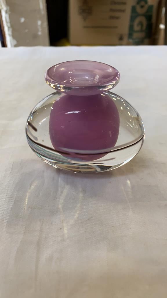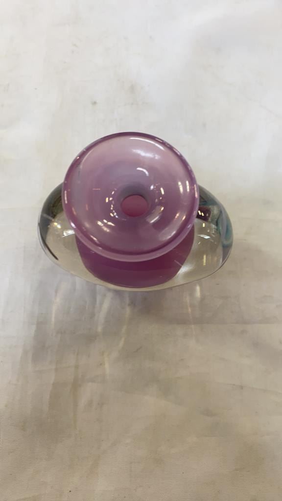 4 PIECES OF ART GLASS - 2 SIGNED AND TEALIGHT HOLDER