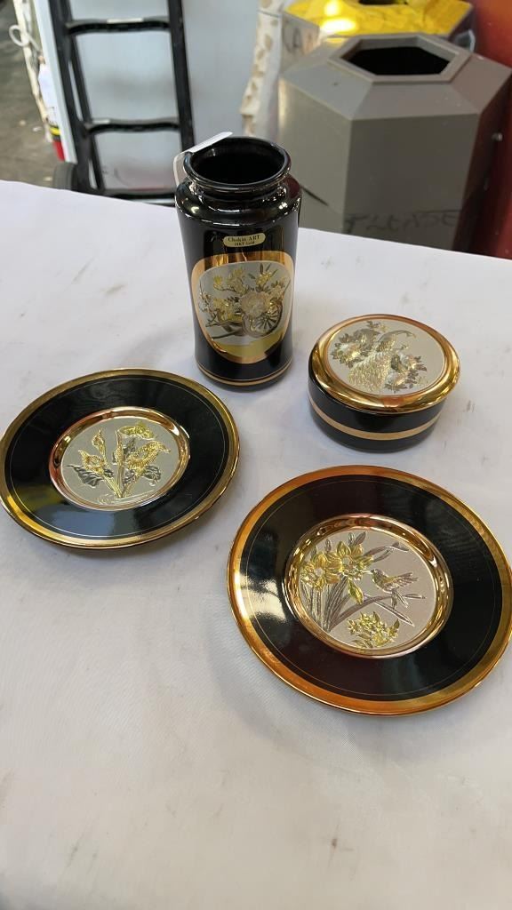 4 PIECES OF CHOKIN JAPANESE 24K GOLD PORCELAIN PIECES