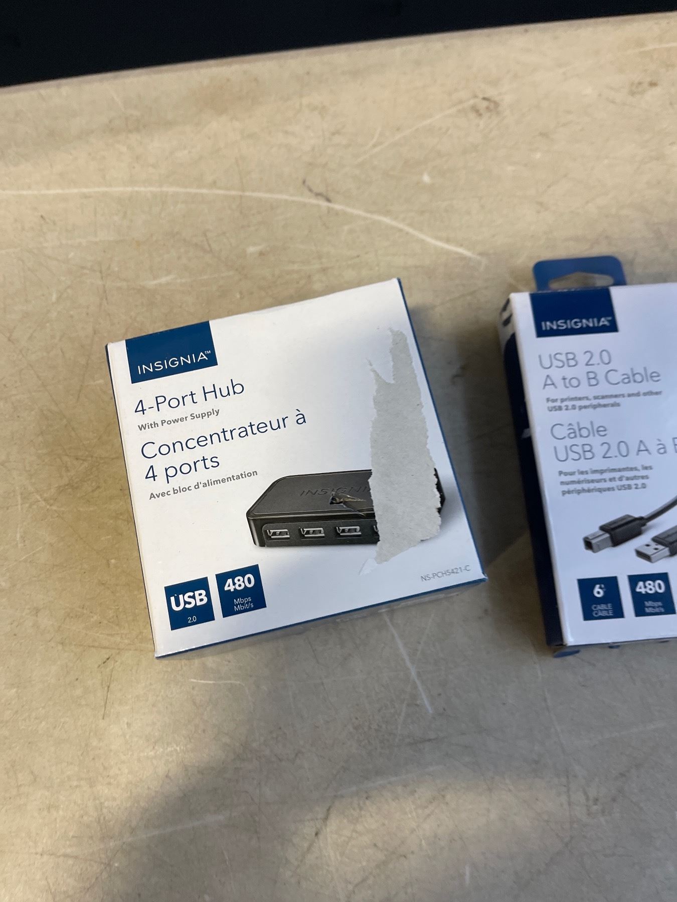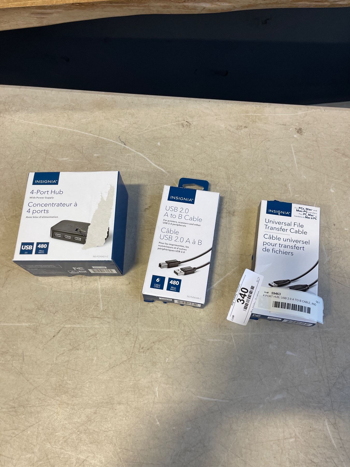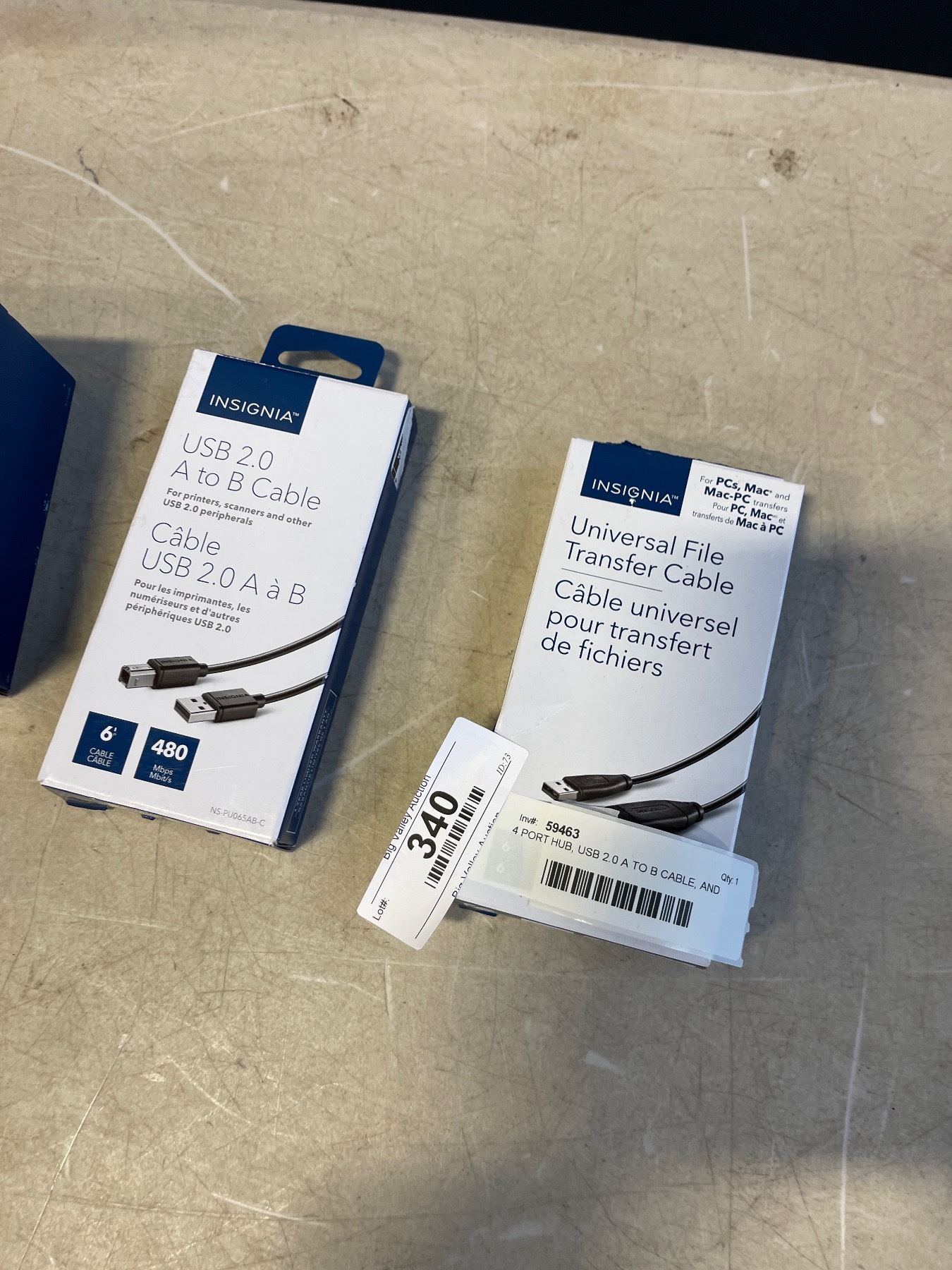 4 PORT HUB, USB 2.0 A TO B CABLE, AND UNIVERSAL FILE TRANSFER CABLE
