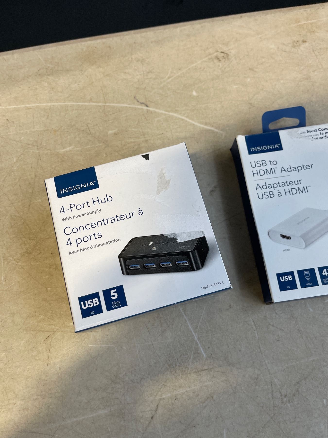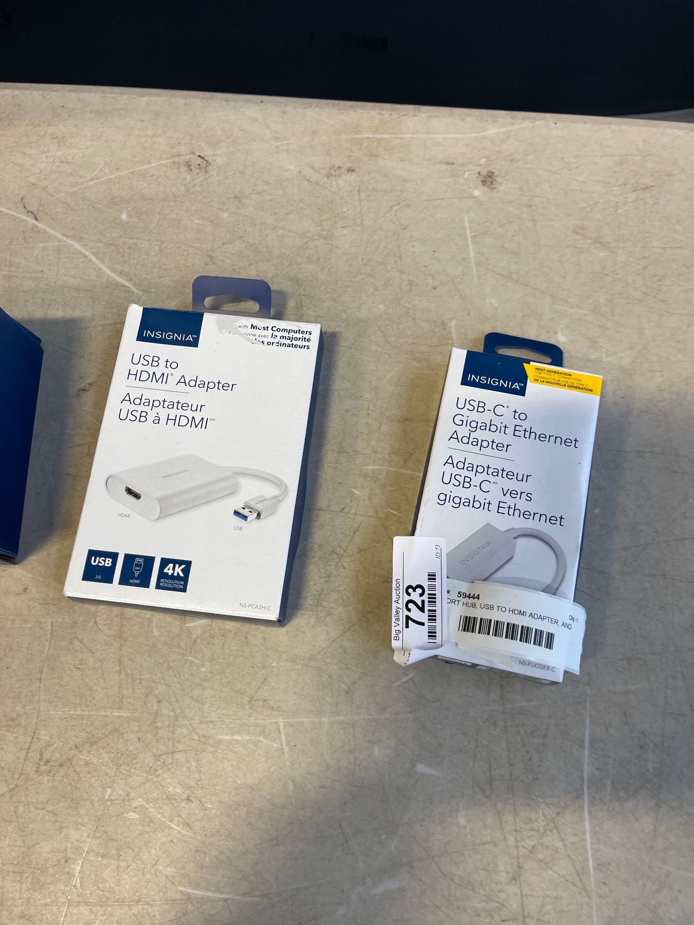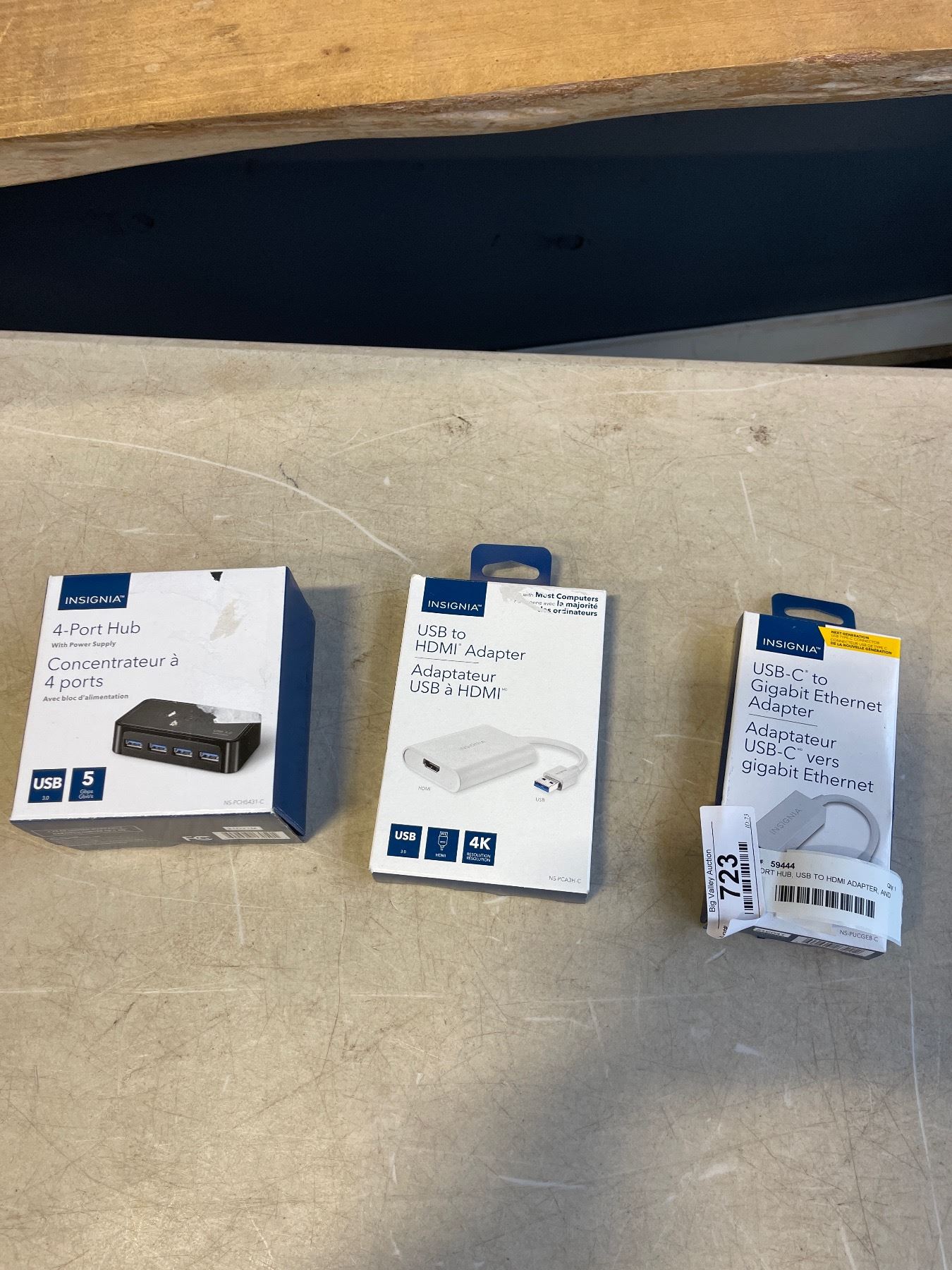 4 PORT HUB, USB TO HDMI ADAPTER, AND USB-C TO GIGABIT ETHERNET ADAPTER