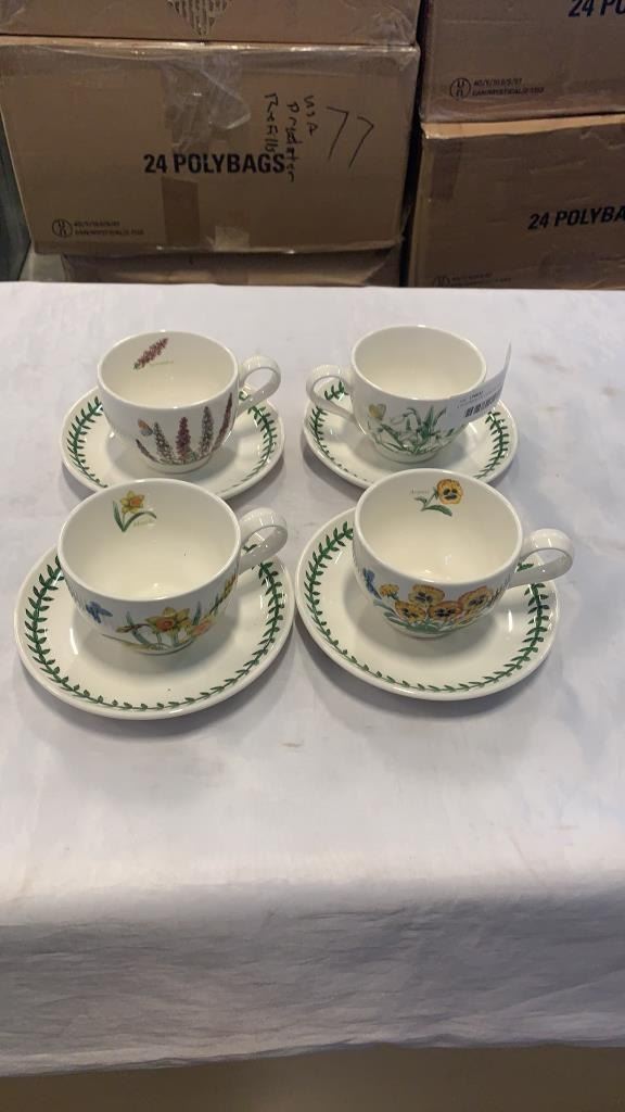 4 PORTMERION CUPS AND SAUCERS