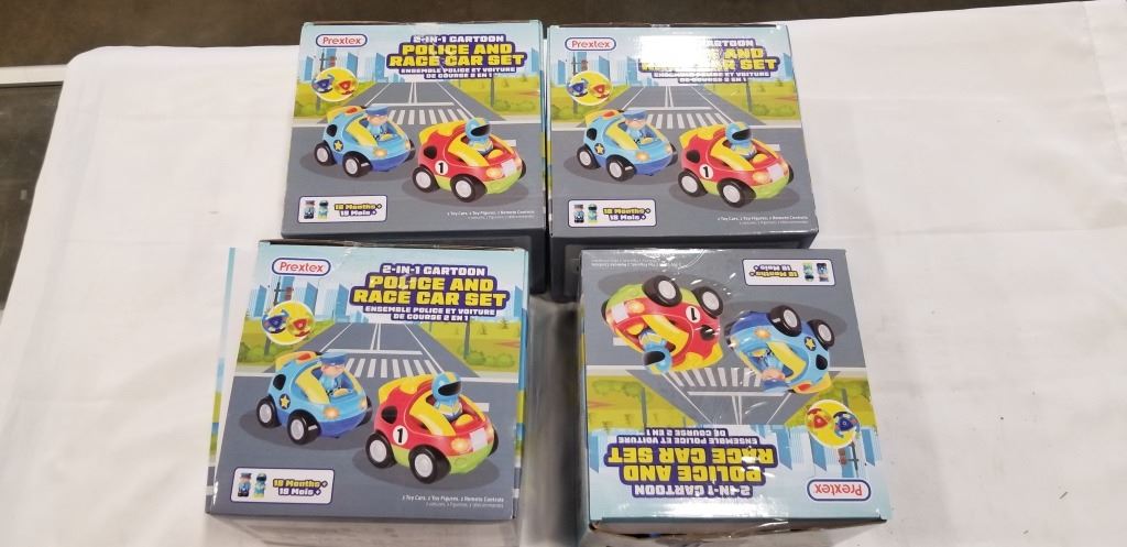 4 PREXTEX 2 IN 1 CARTOON POLICE AND RACE CAR SETS