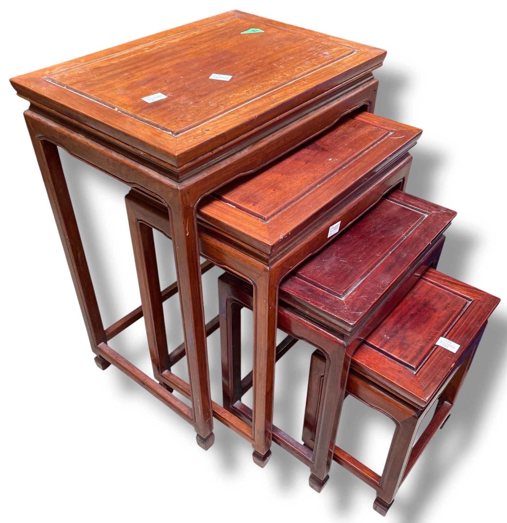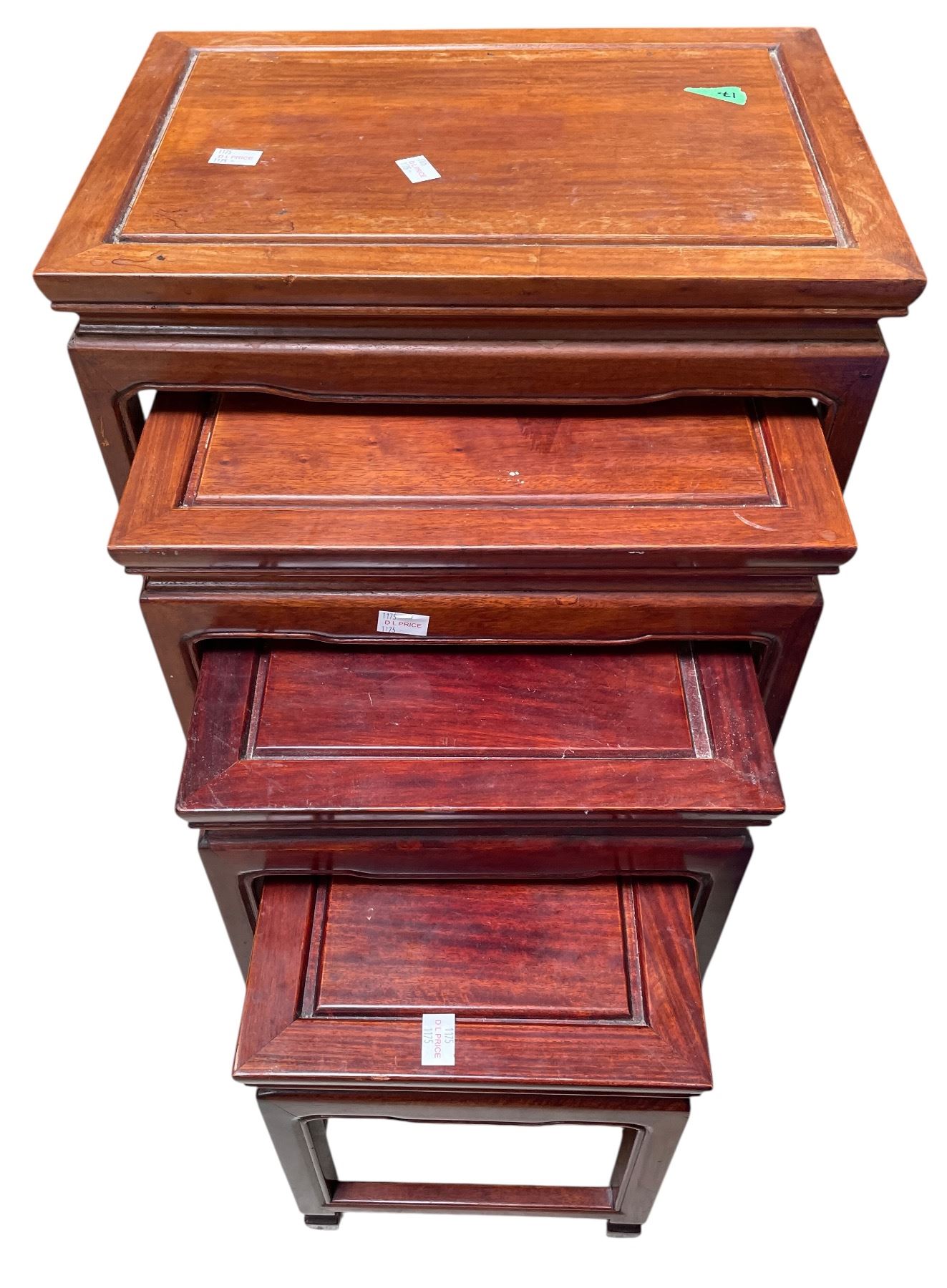 4 Piece Asian Design Rosewood Nesting Table Set - Biggest table measures: 14" x 20" x 26" tall.