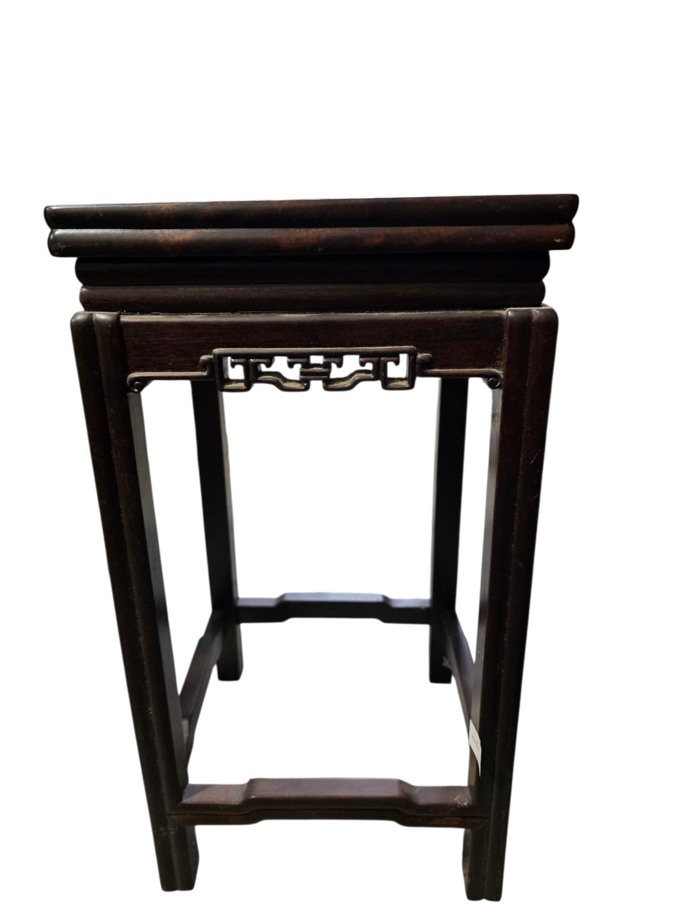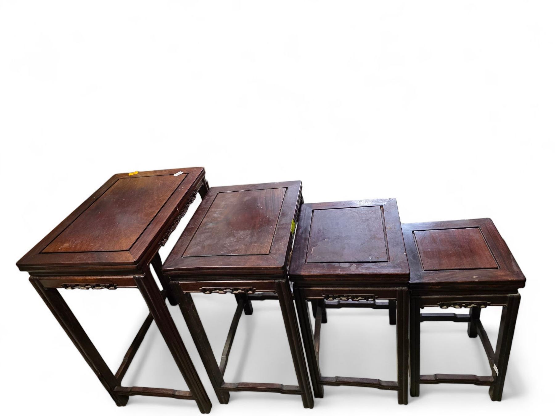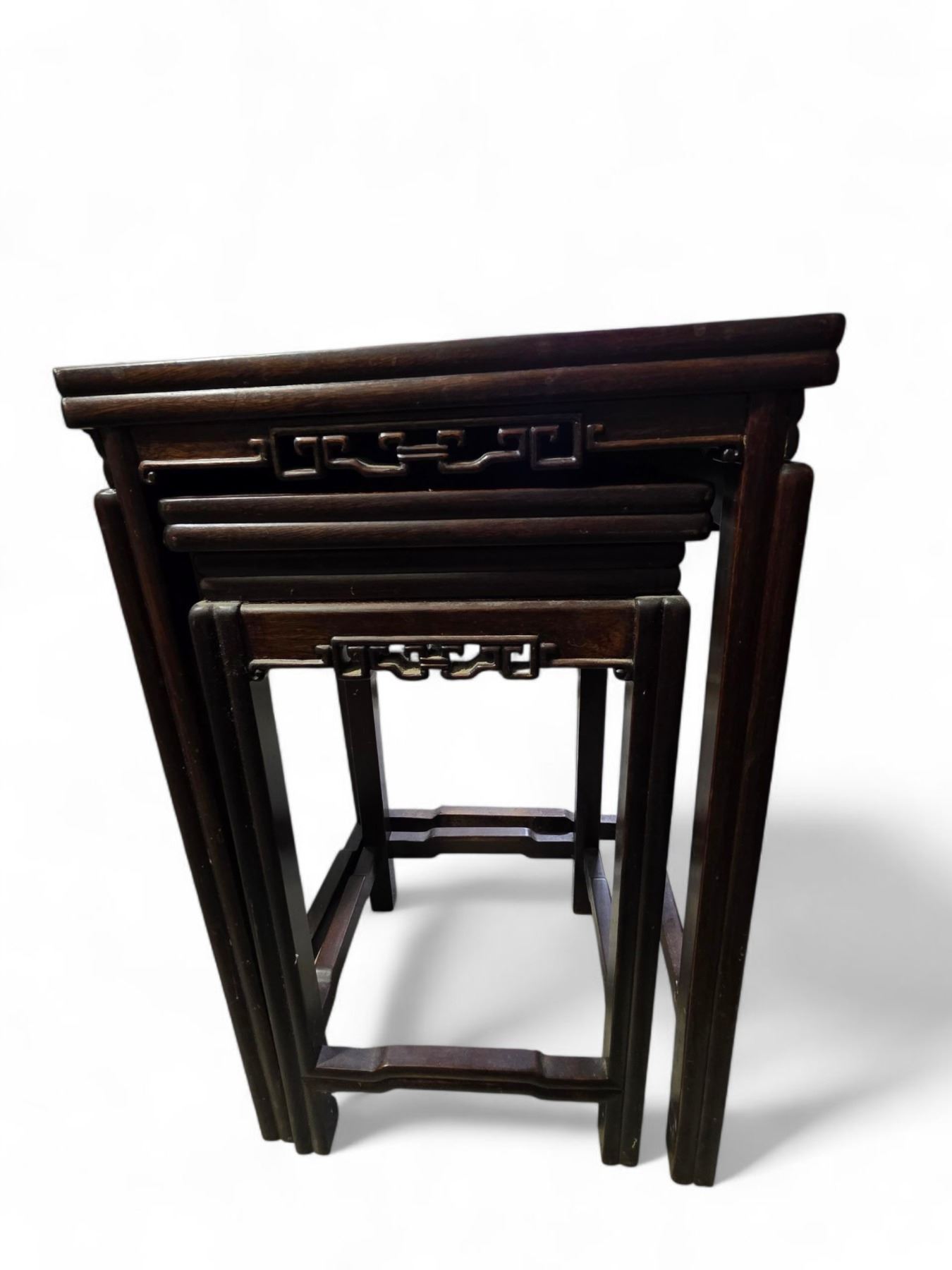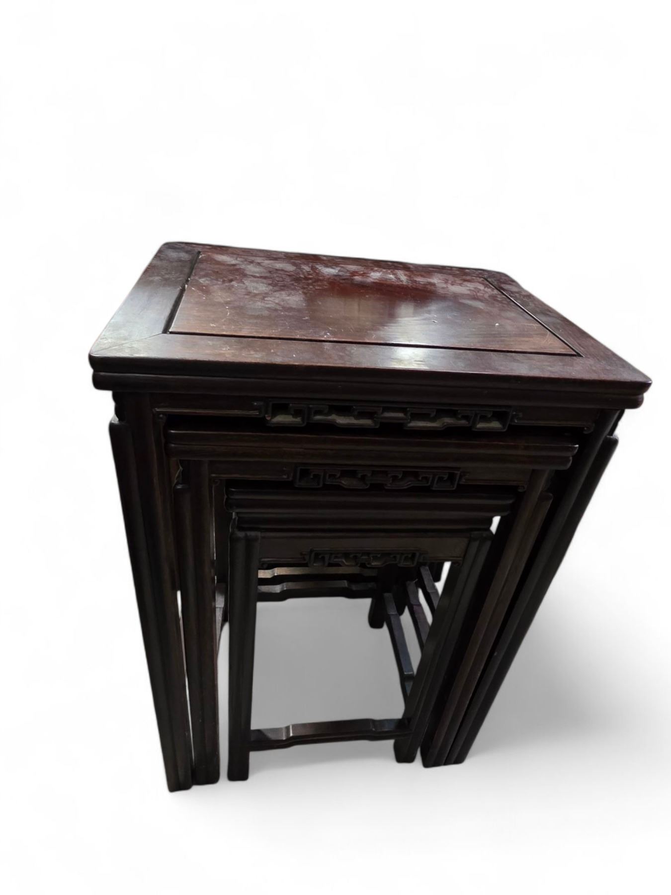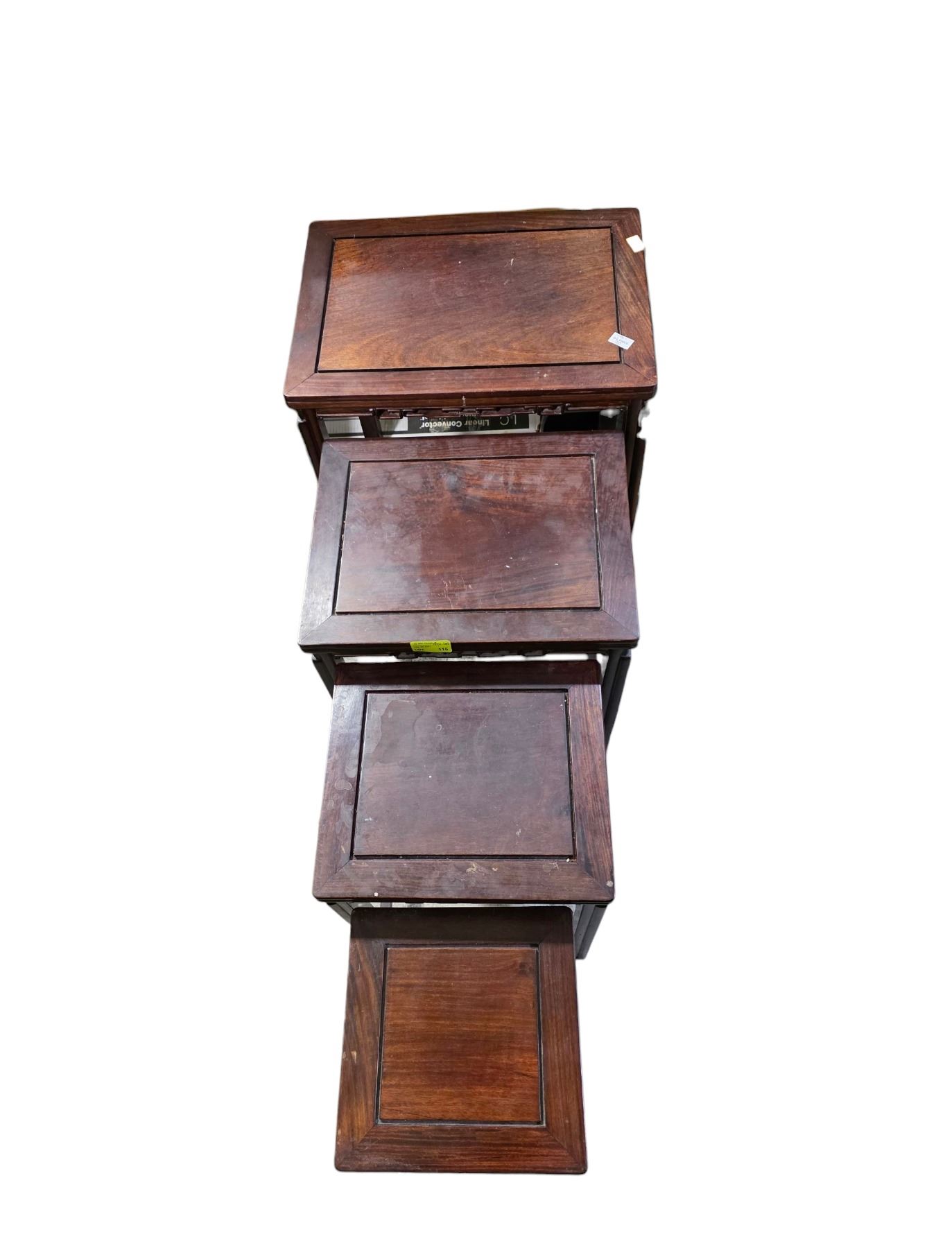 4 Piece Carved Asian Design Nesting Table Set - Largest Table is 20" x 15" x 27" tall.