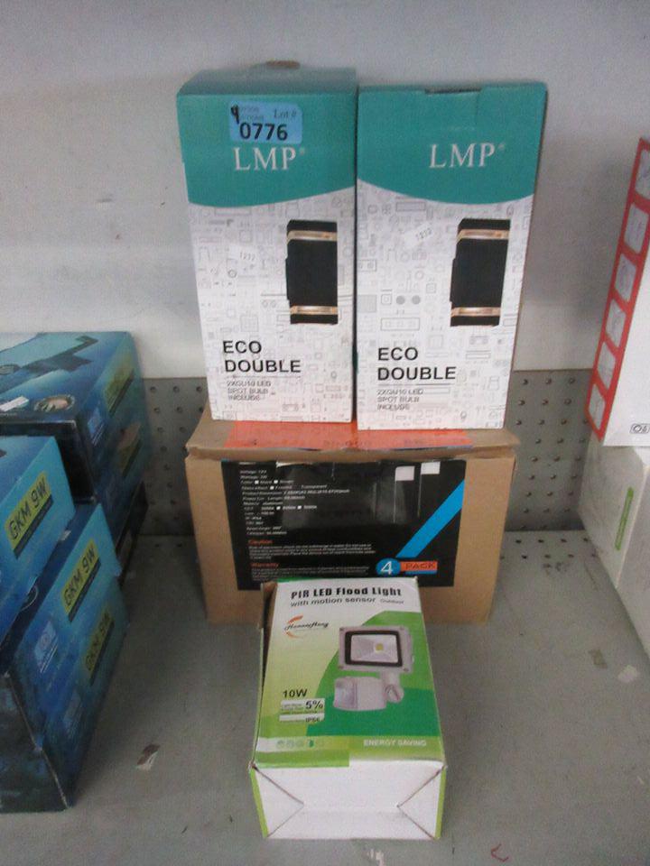 Includes a PIR LED flood light & 2 exterior wall mounted light fixtures