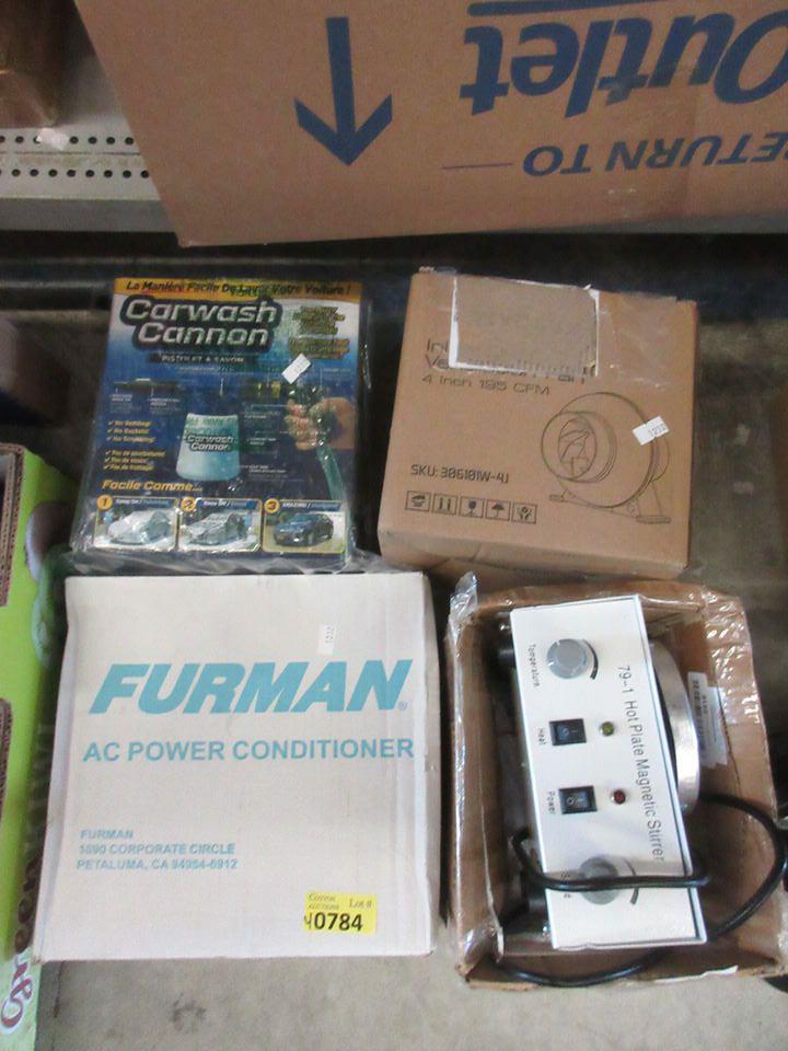 AC Power conditioner, 79-1 hotplate magnetic stirrer, carwash cannon & inline duct ventilation fan