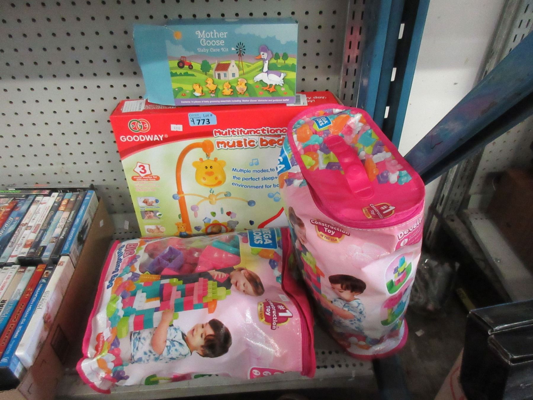Mother Goose Baby Care Kit, music crib mobile & 2 Mega Bloks sets.