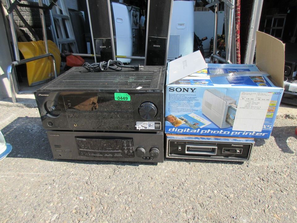 Pioneer and Kenwood Receivers, Sony Printer and 8 Track Player.
