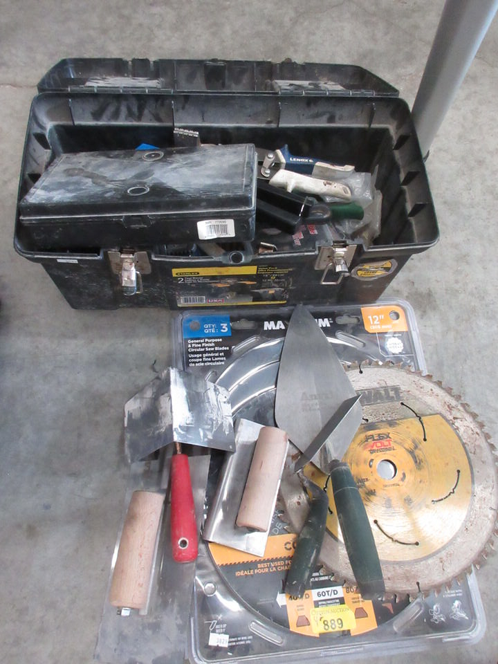 4+ Piece Lot of Tool Box, Saw Blades and Trowels