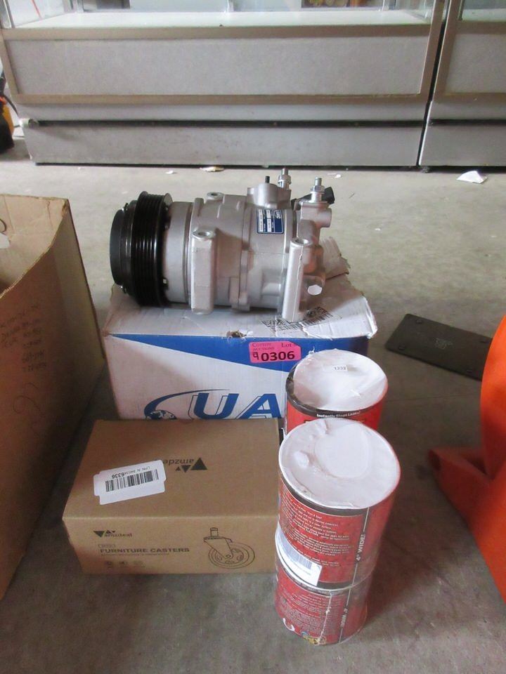 AC Compressor, 2 Packages of 2 Rolls of Flex Tape, & Box of Casters