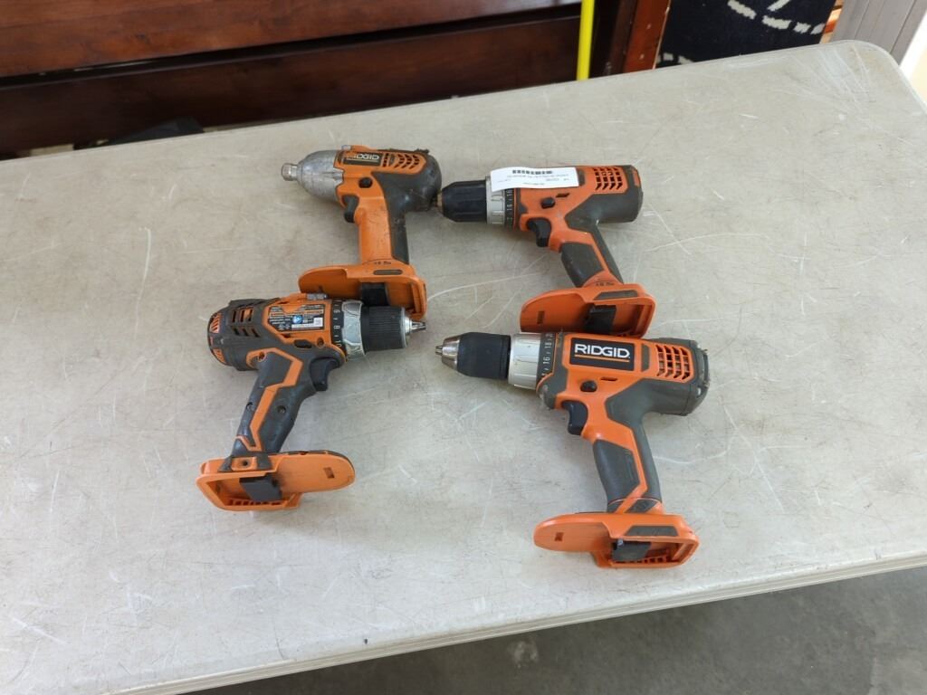4 RIDGID 18V DRILLS ALL ARE WORKING NO BATTERIES
