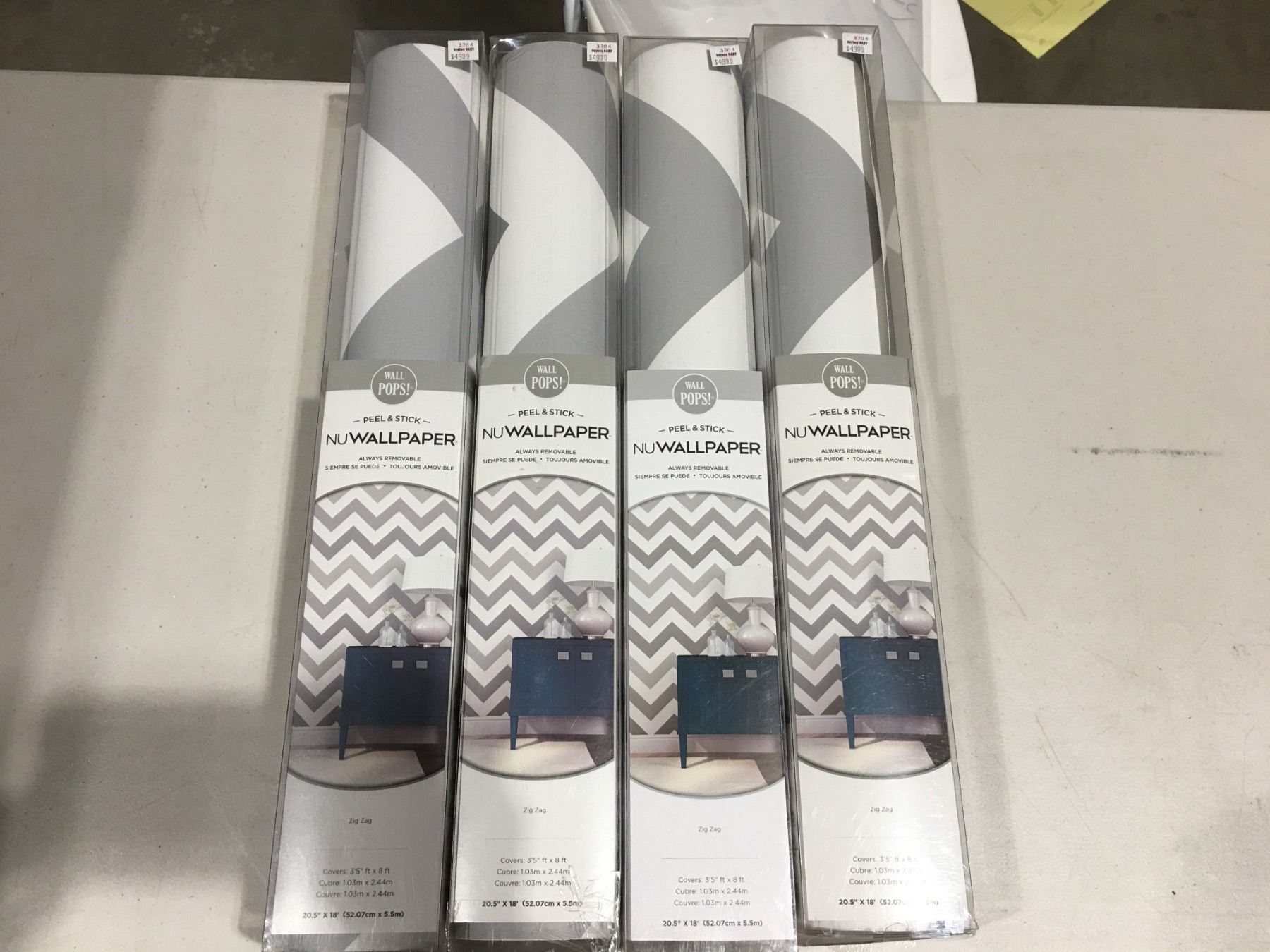 4 ROLLS WALL POPS PEEL & STICK NUWALLPAPER (GREY ZIG ZAG) EACH ROLL COVERS APPROX 3' X 8'