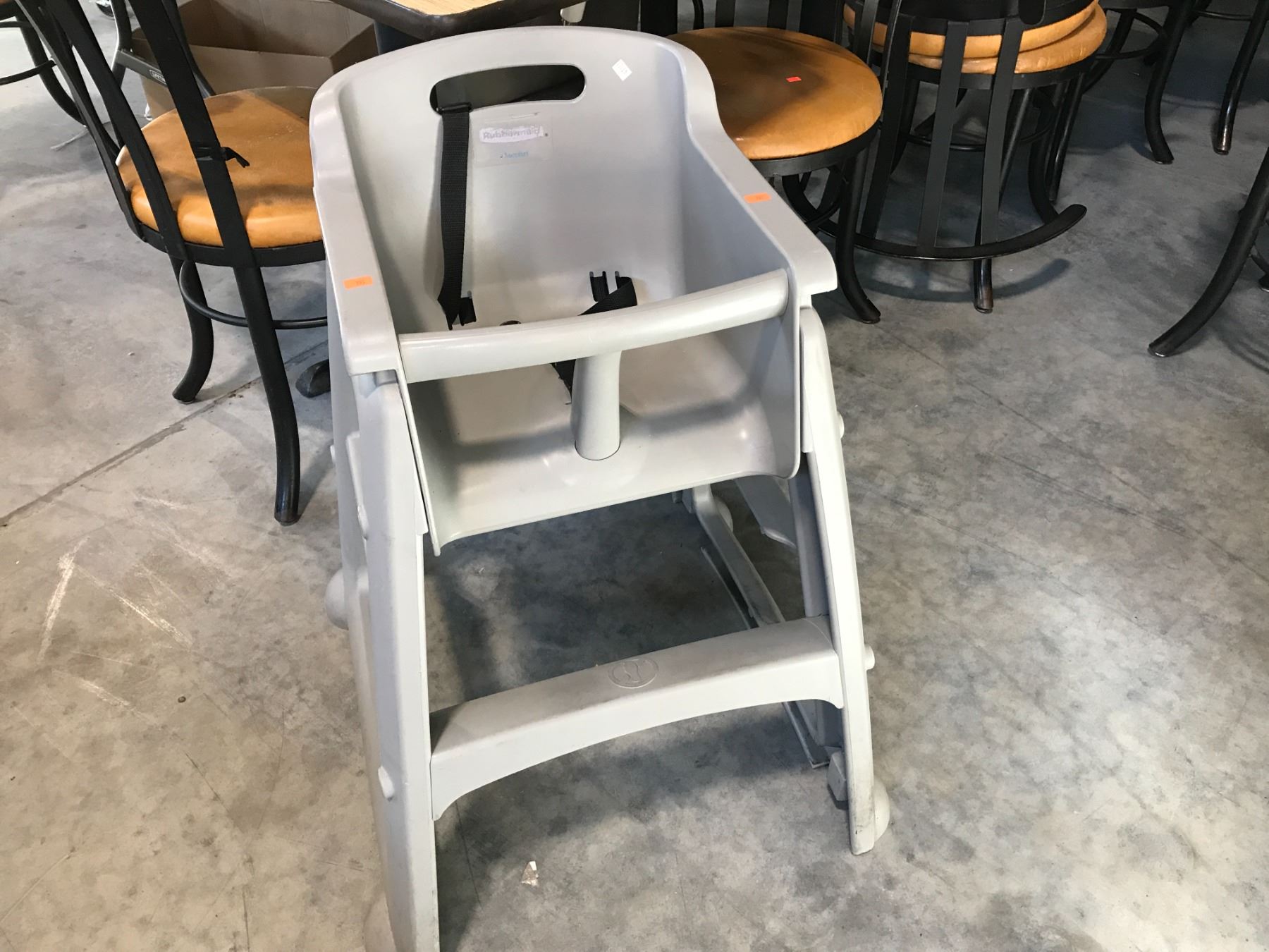 4 RUBBERMAID GREY PLASTIC HIGH CHAIRS