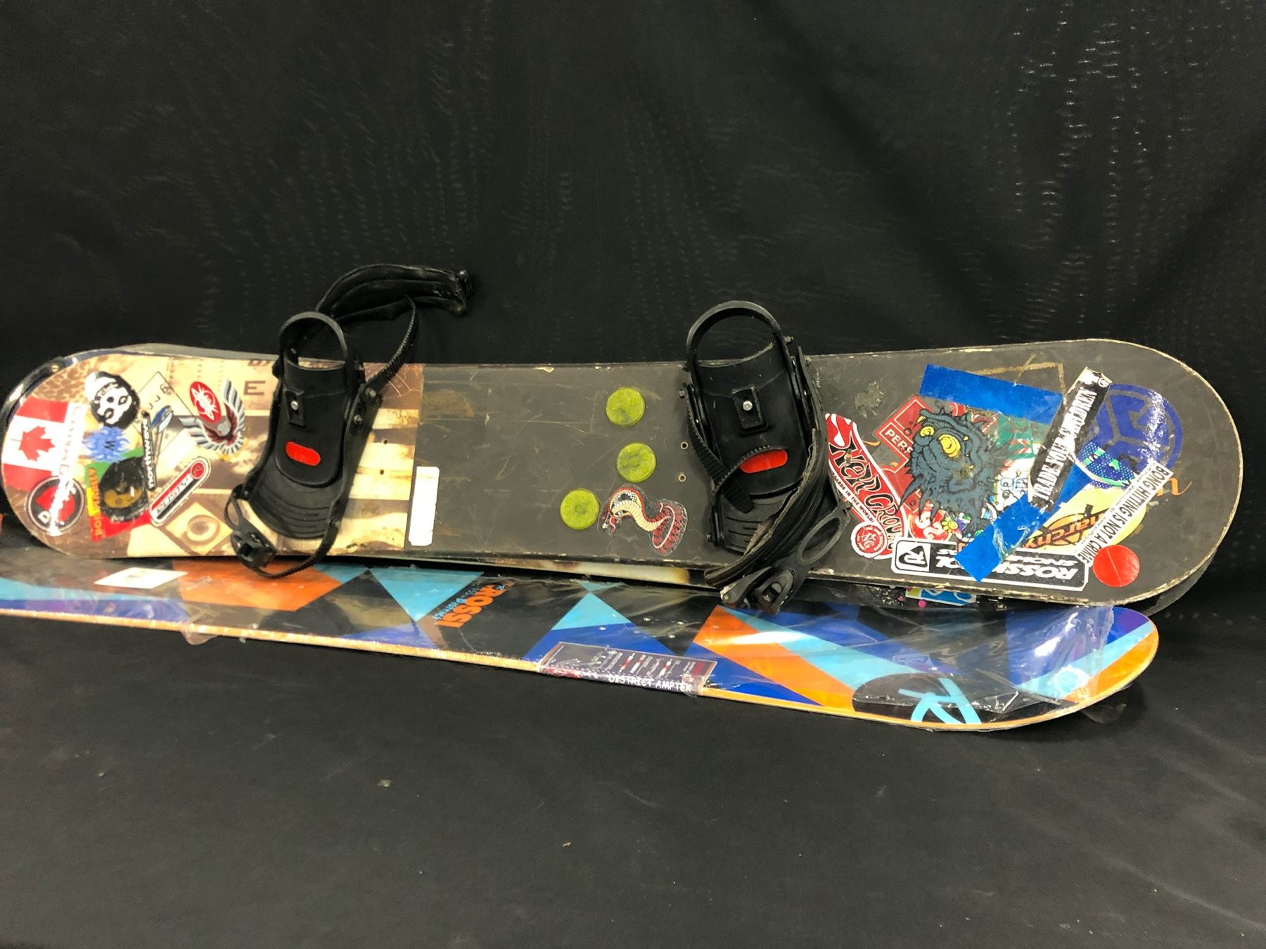 4 SNOWBOARDS, ROSSIGNOL DISTRICT 155CM, LTD TRANSITION 154, HEELSIDE 159, TWENTY SEVEN 158CM SNOWBOARD WITH BINDINGS