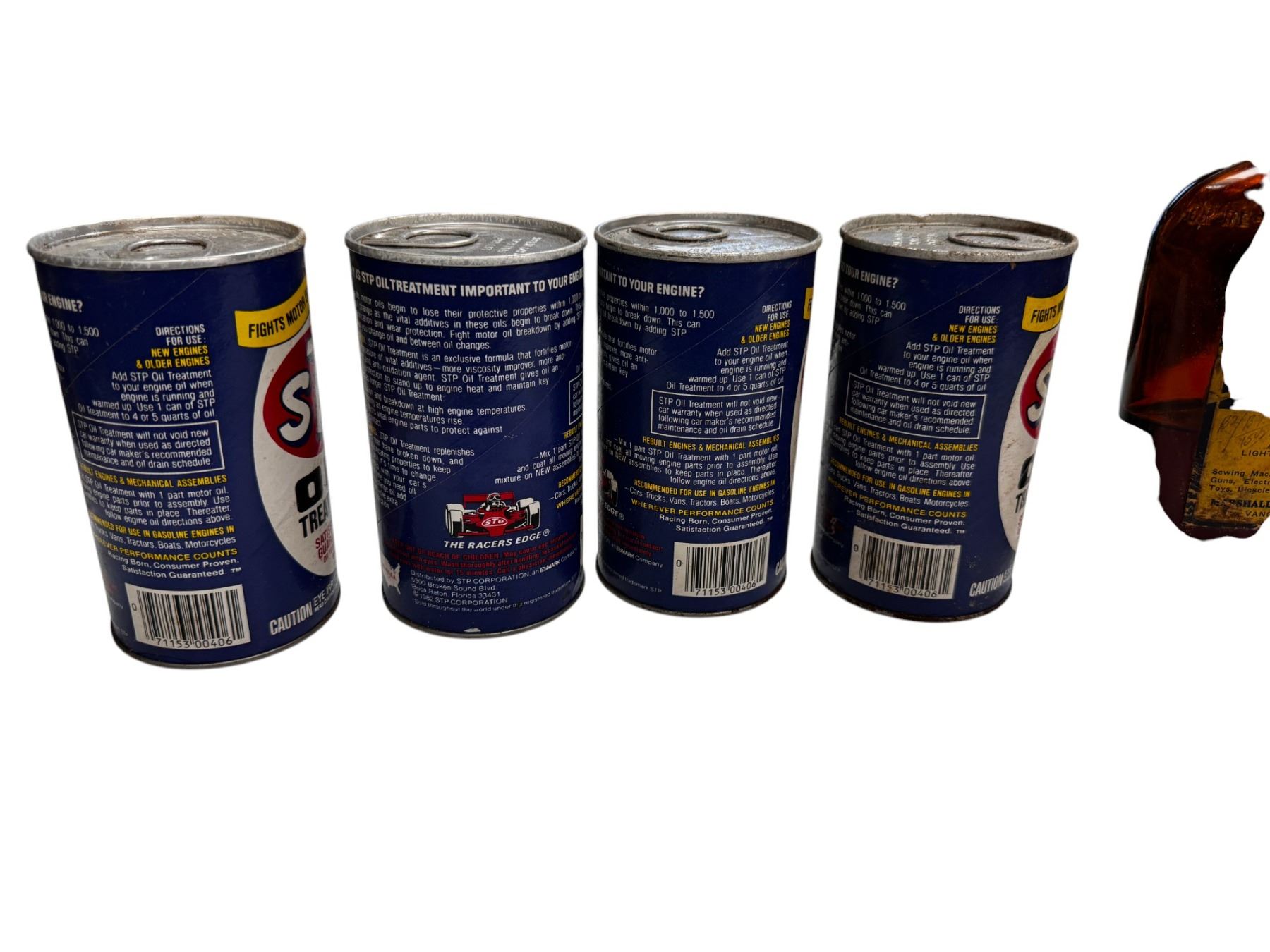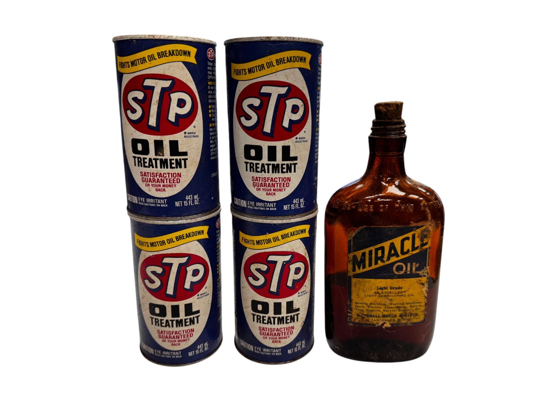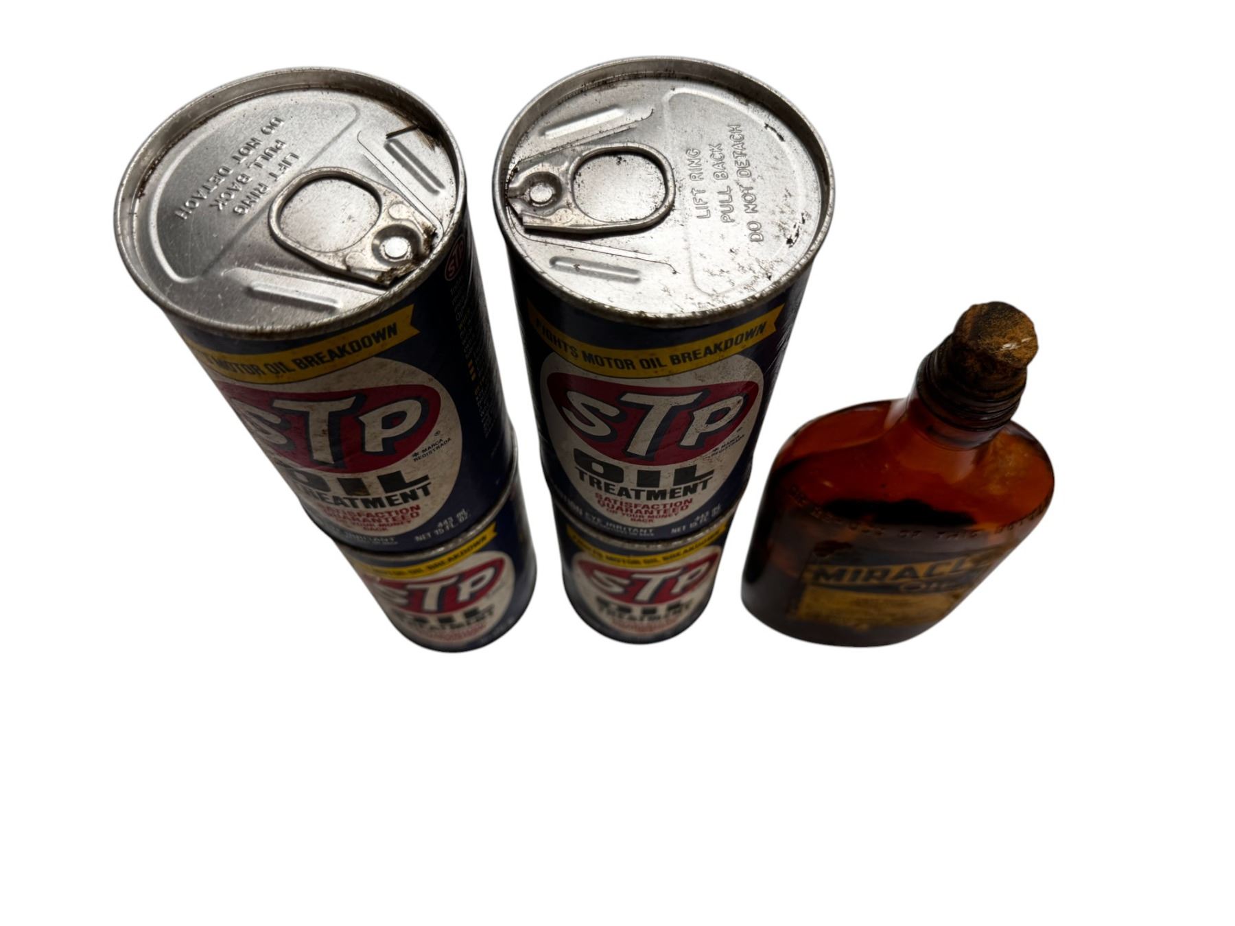 4 STP Oil Treatment Cans(Full) & Miracle Oil Glass Bottle
