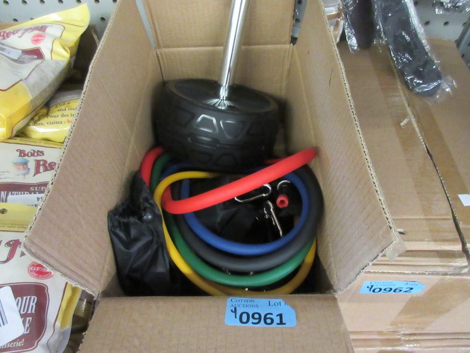 Each contains, resistance bands with door/wall pullies & ab roller.