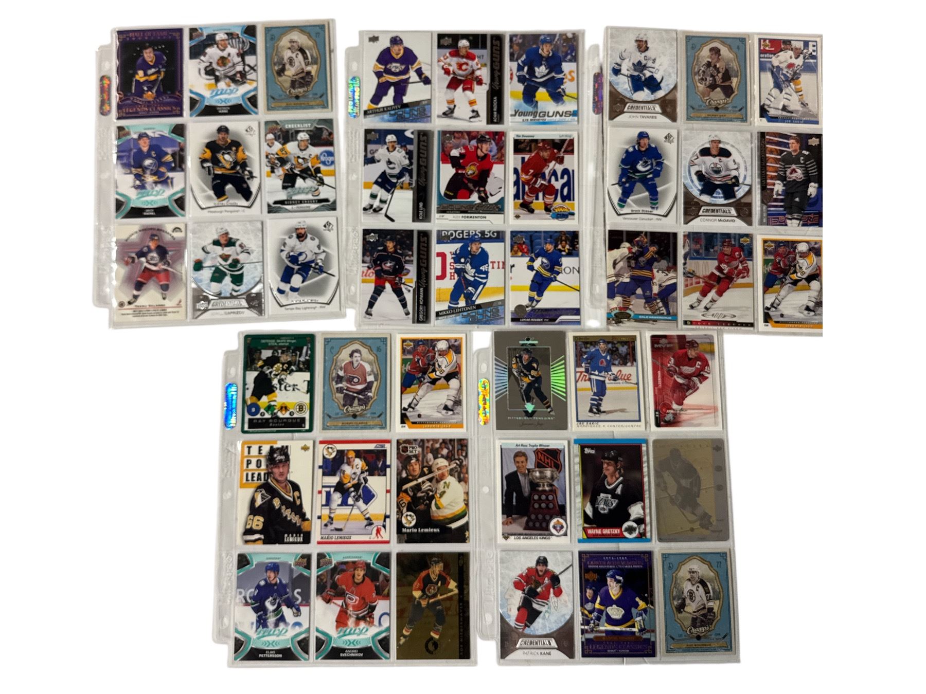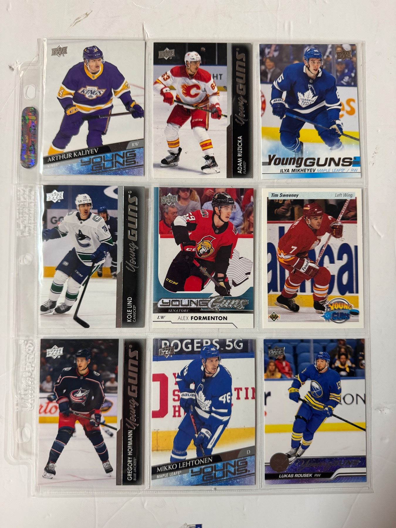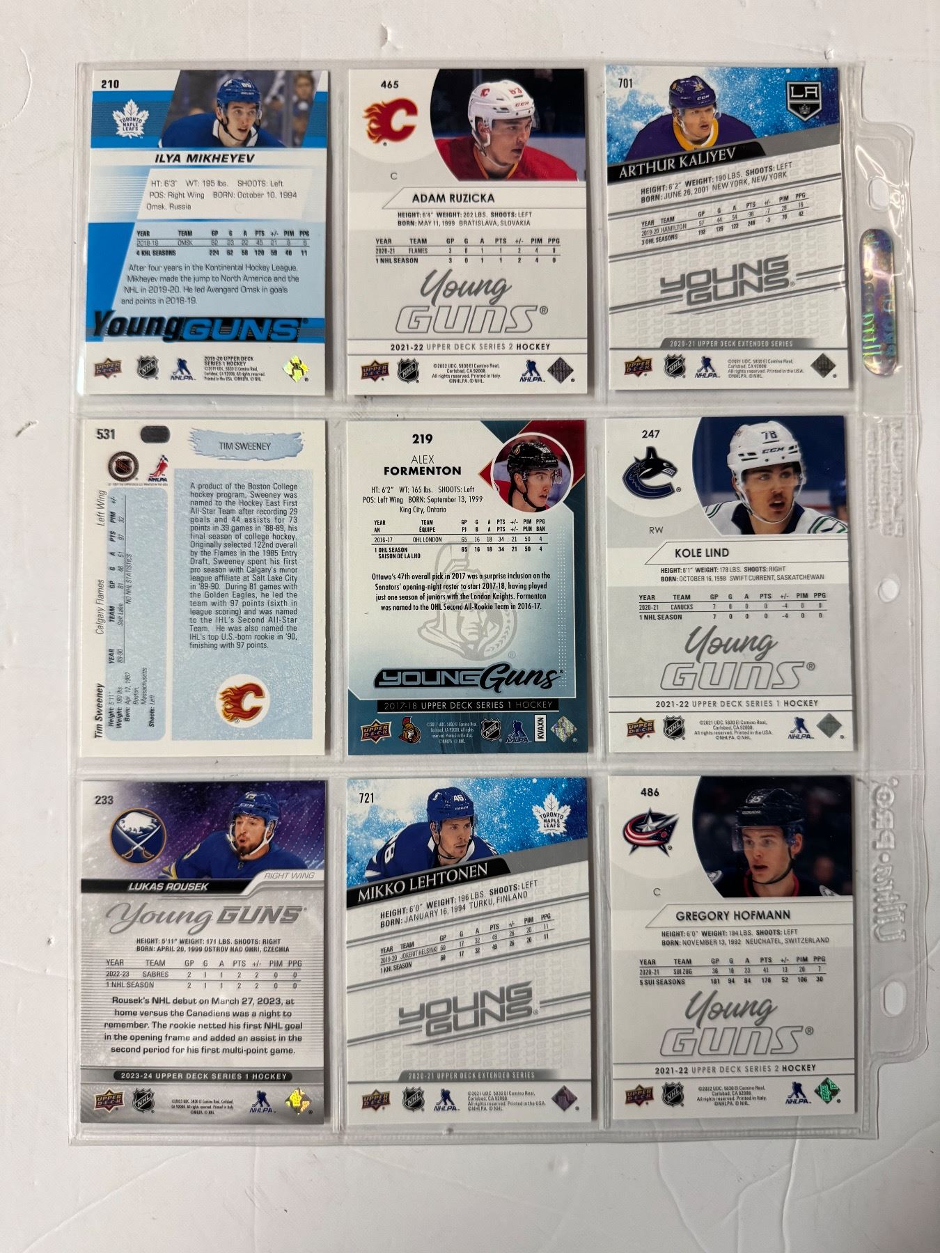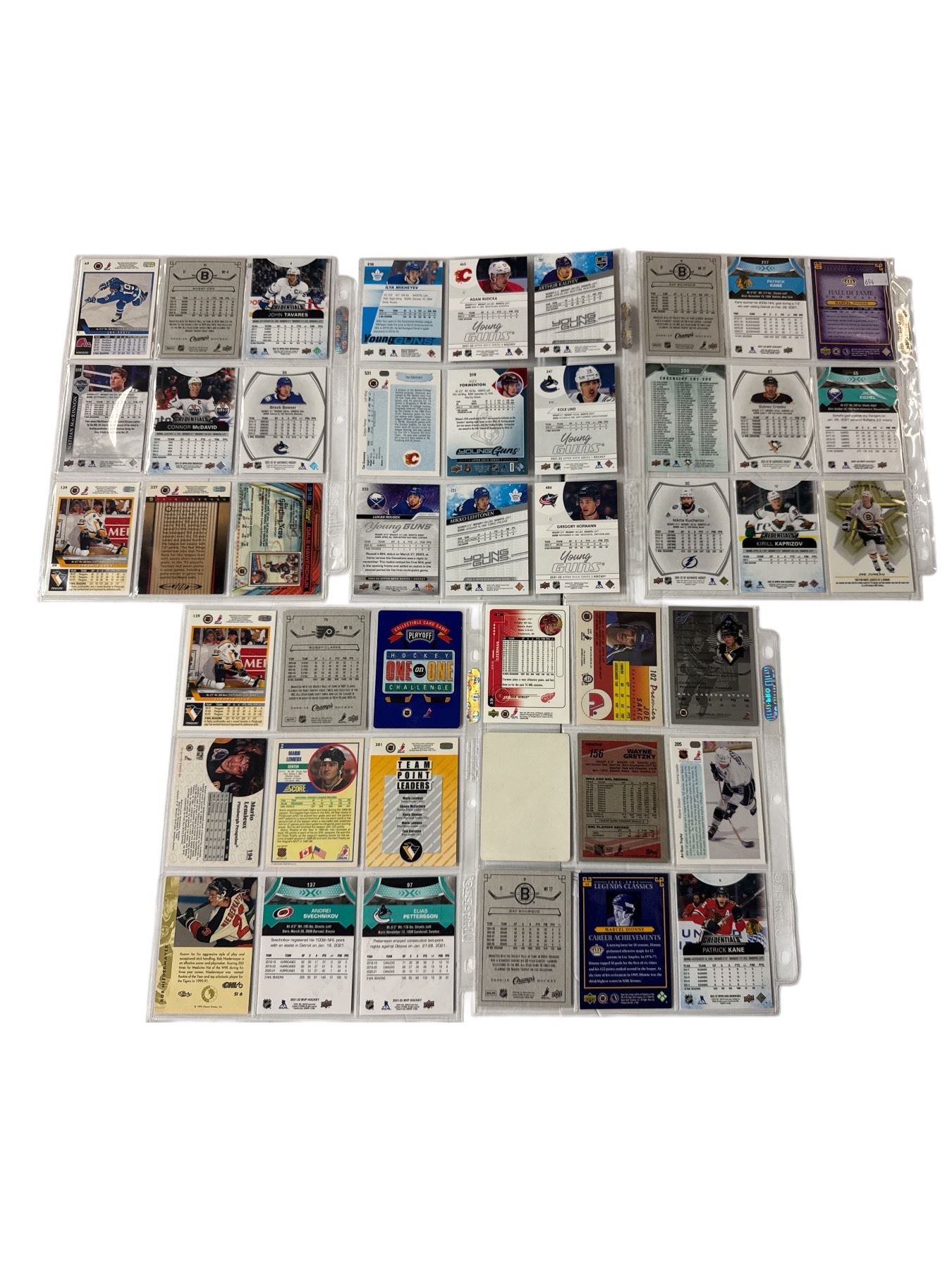 4 Sheets Of Various NHL Hockey Cards: Young Guns, NHL Stars, Upper Deck, Topps, & More