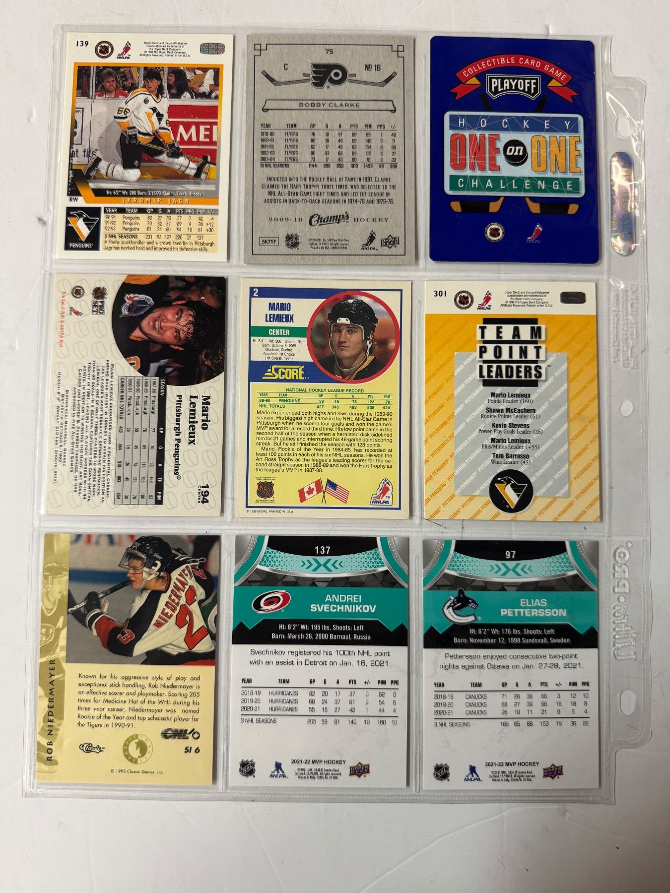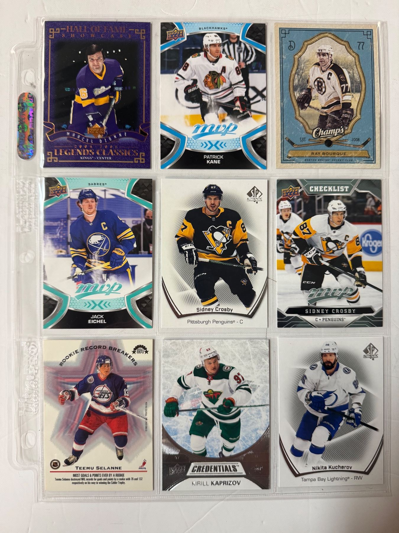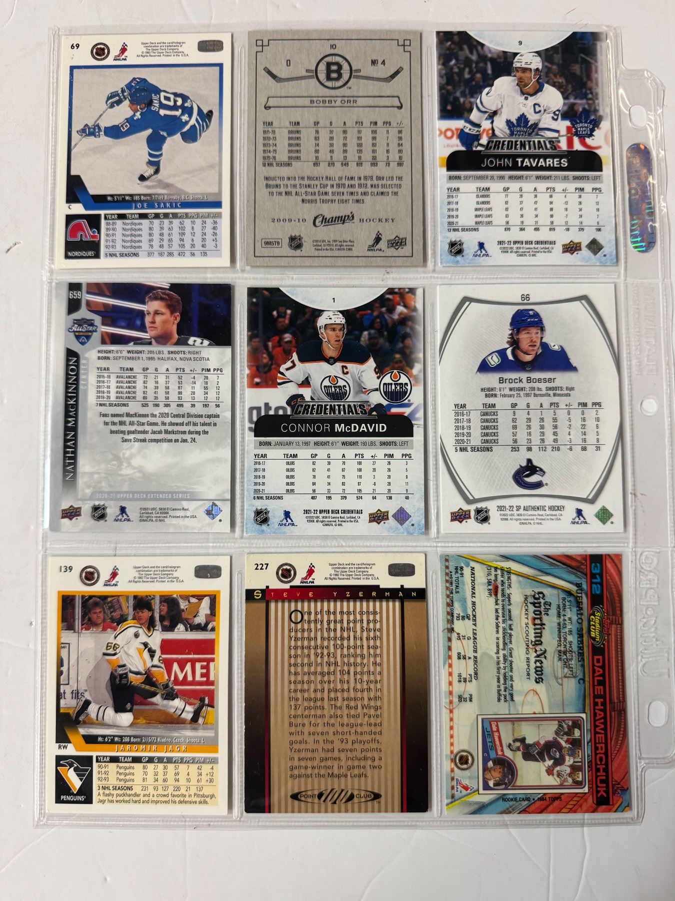 4 Sheets Of Various NHL Hockey Cards: Young Guns, NHL Stars, Upper Deck, Topps, & More