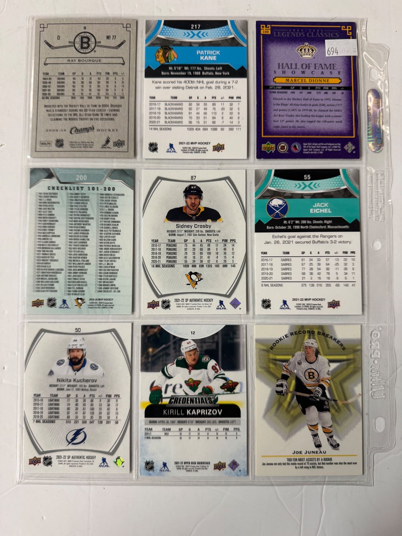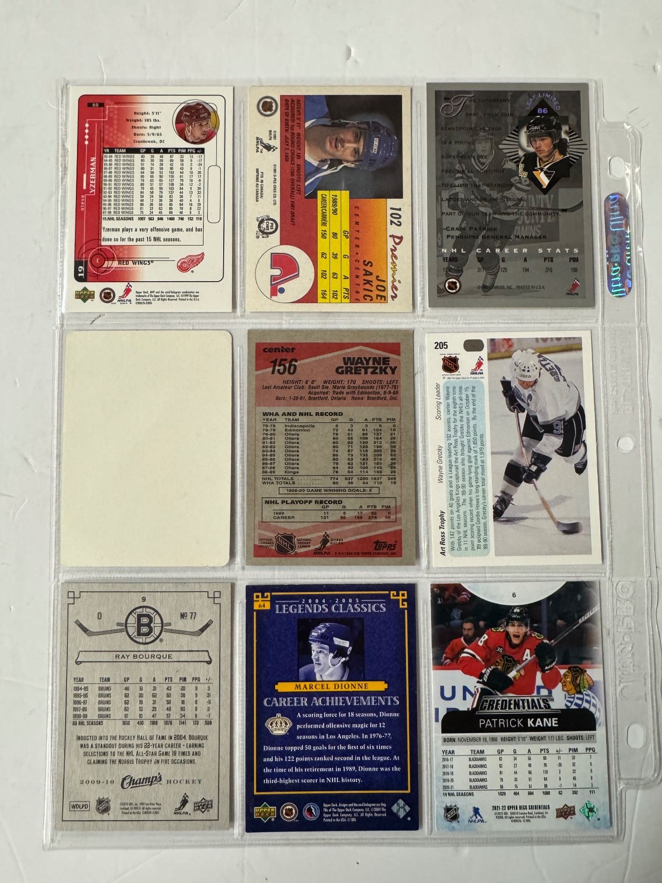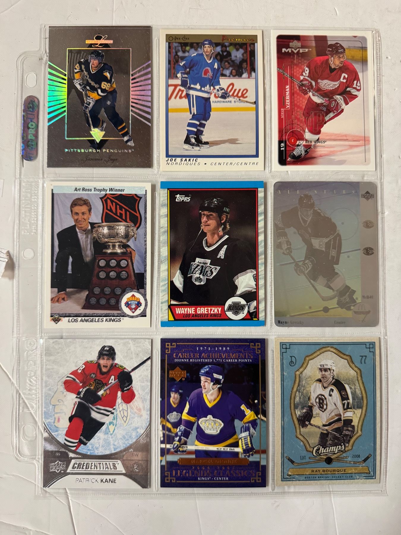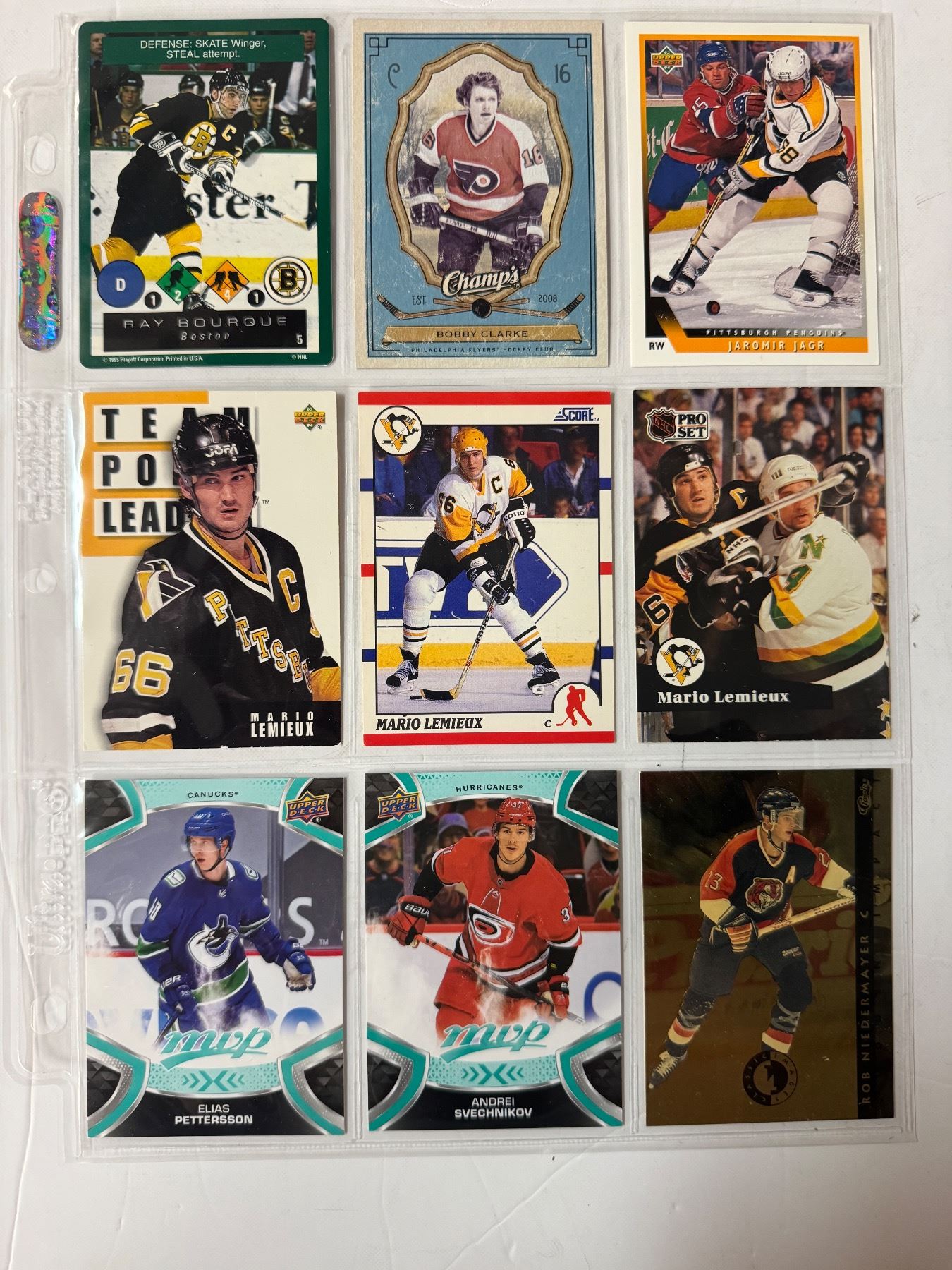 4 Sheets Of Various NHL Hockey Cards: Young Guns, NHL Stars, Upper Deck, Topps, & More