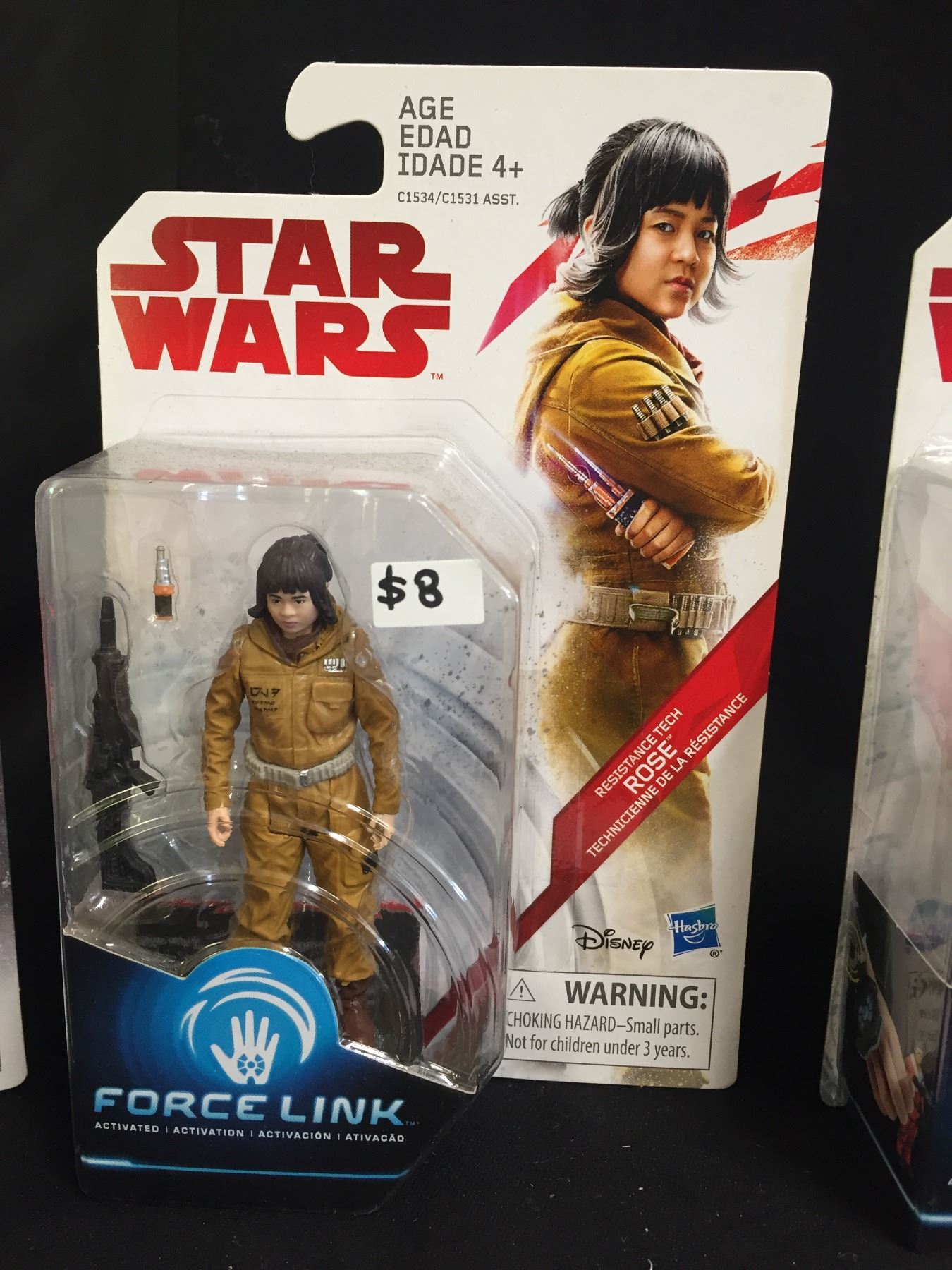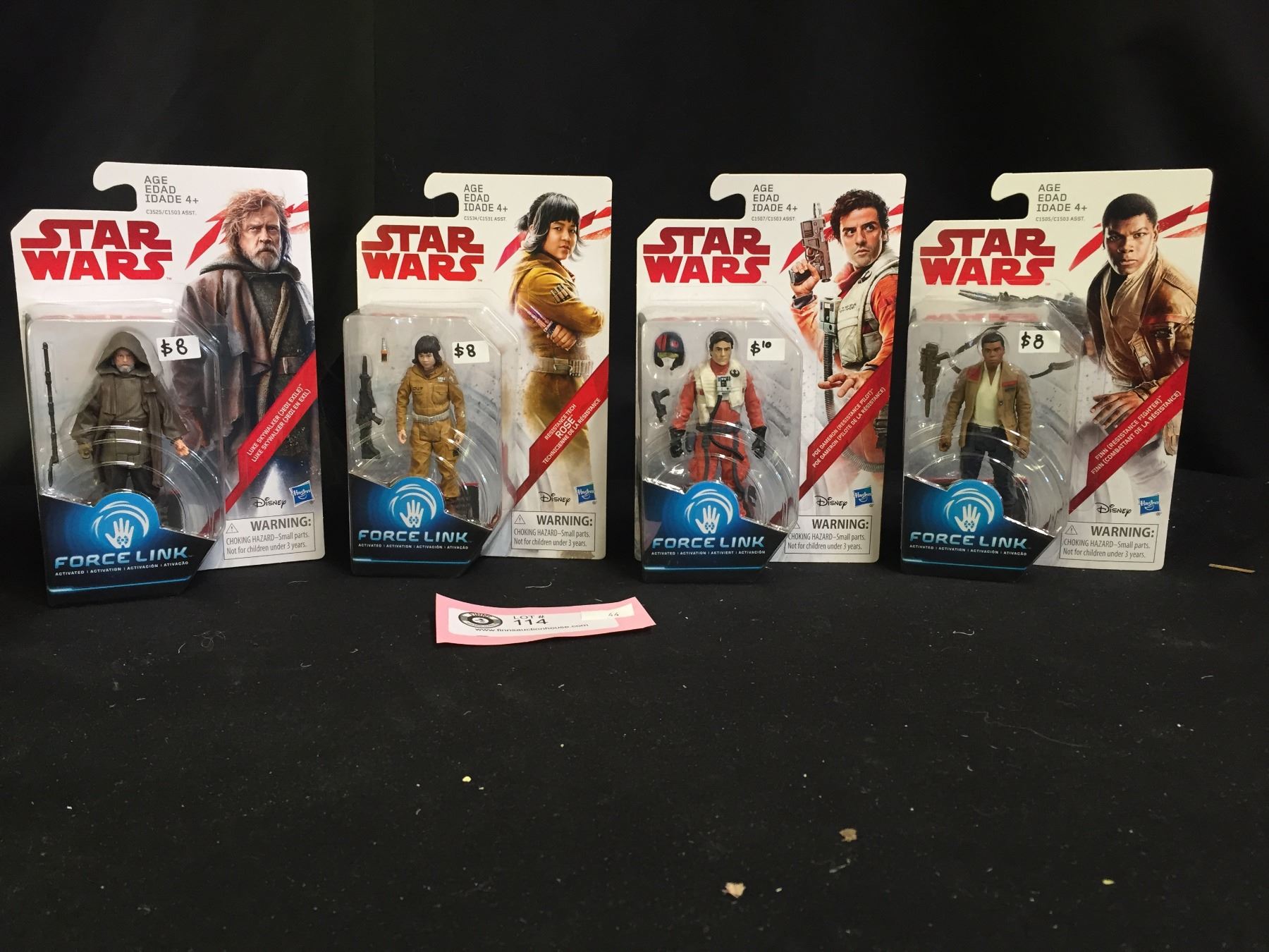 4 Star Wars Figures. New In Package.Luke Skywalker,Rose,POE Dameron and Finn